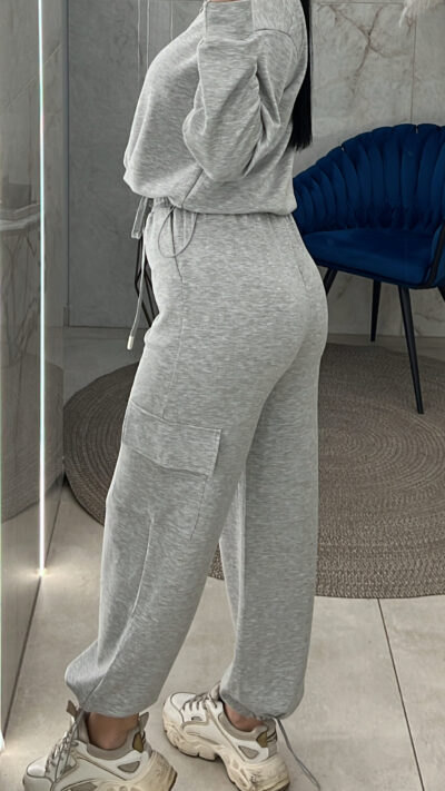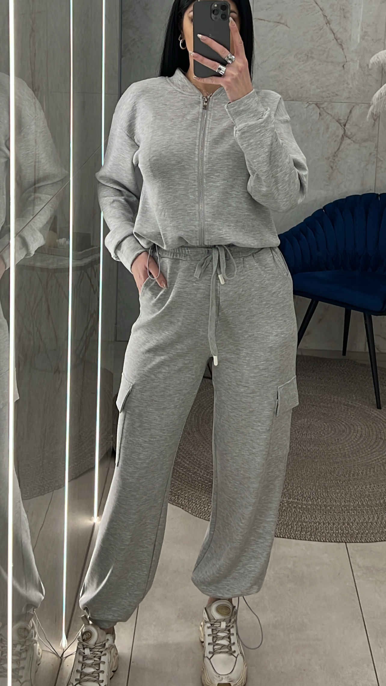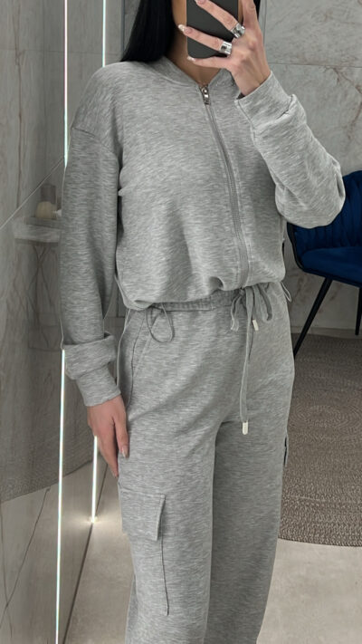 Σετ φόρμας Μao με ζακέτα που έχει λάστιχο στο τελείωμα της μέσης και παντελόνι με πλαϊνές και κανονικές τσέπες λάστιχο στη μέση και κορδόνι