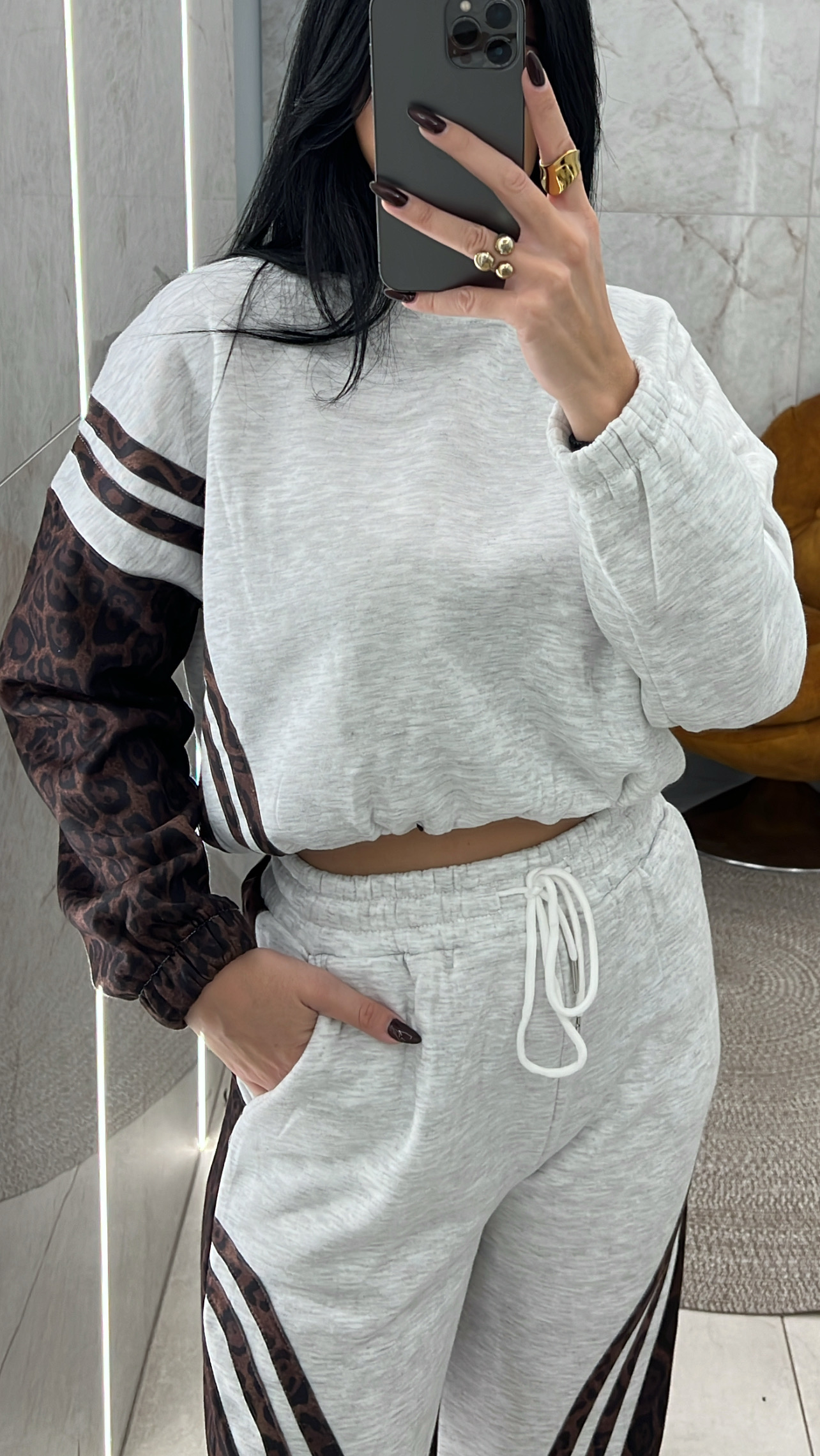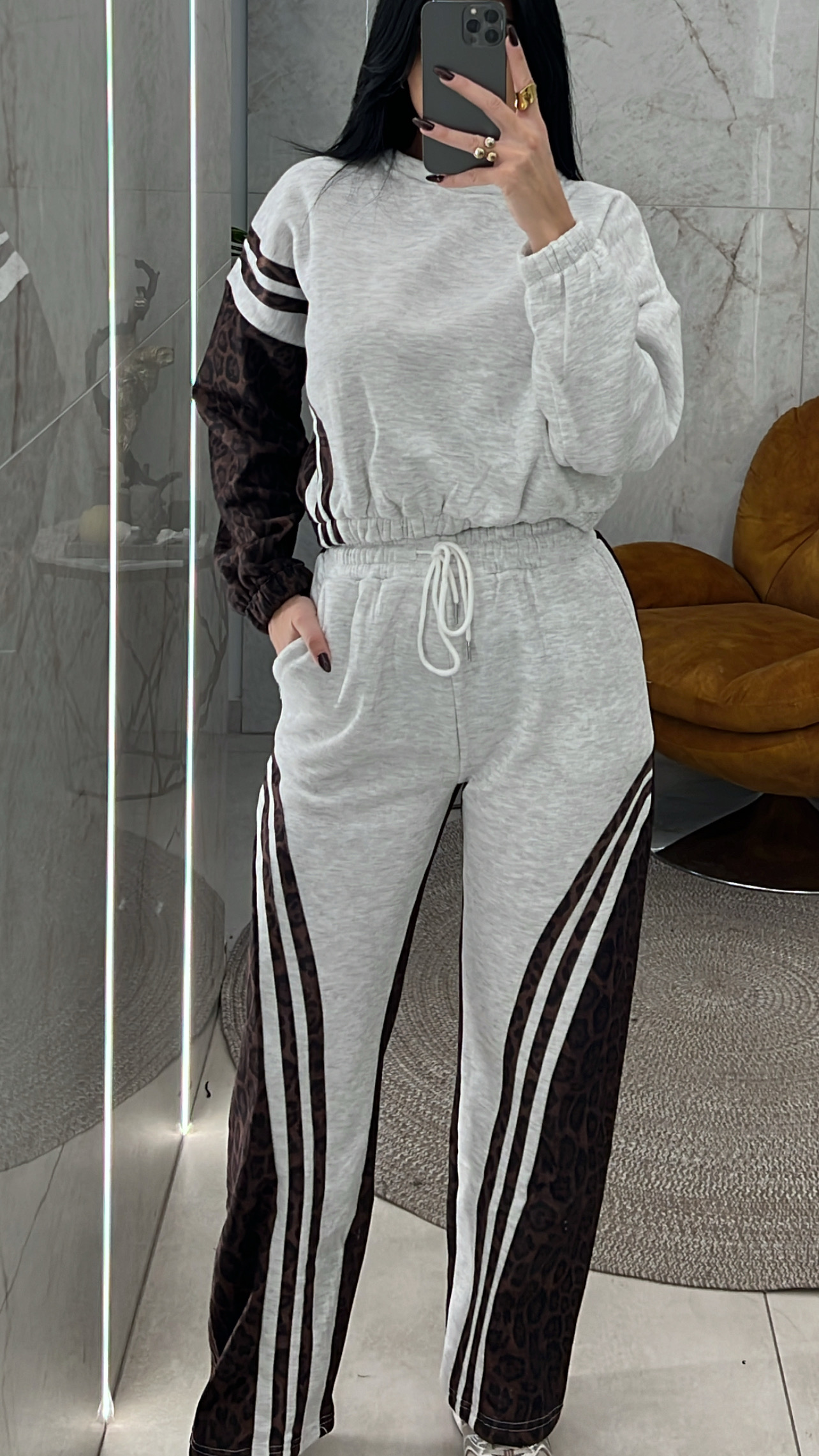 Σετ Φόρμας Βελουτέ Λεοπάρ Ρίγα/Καφέ