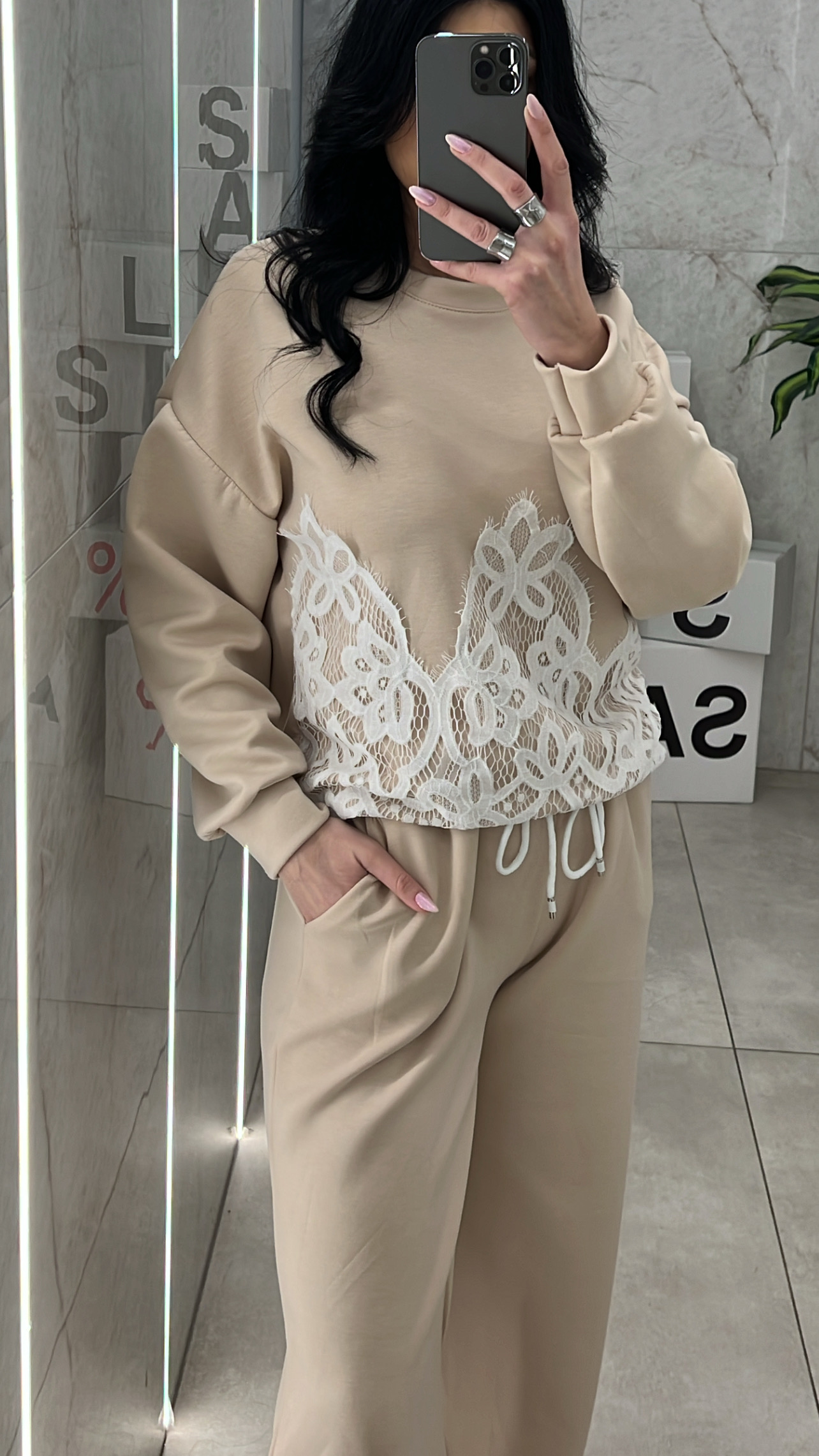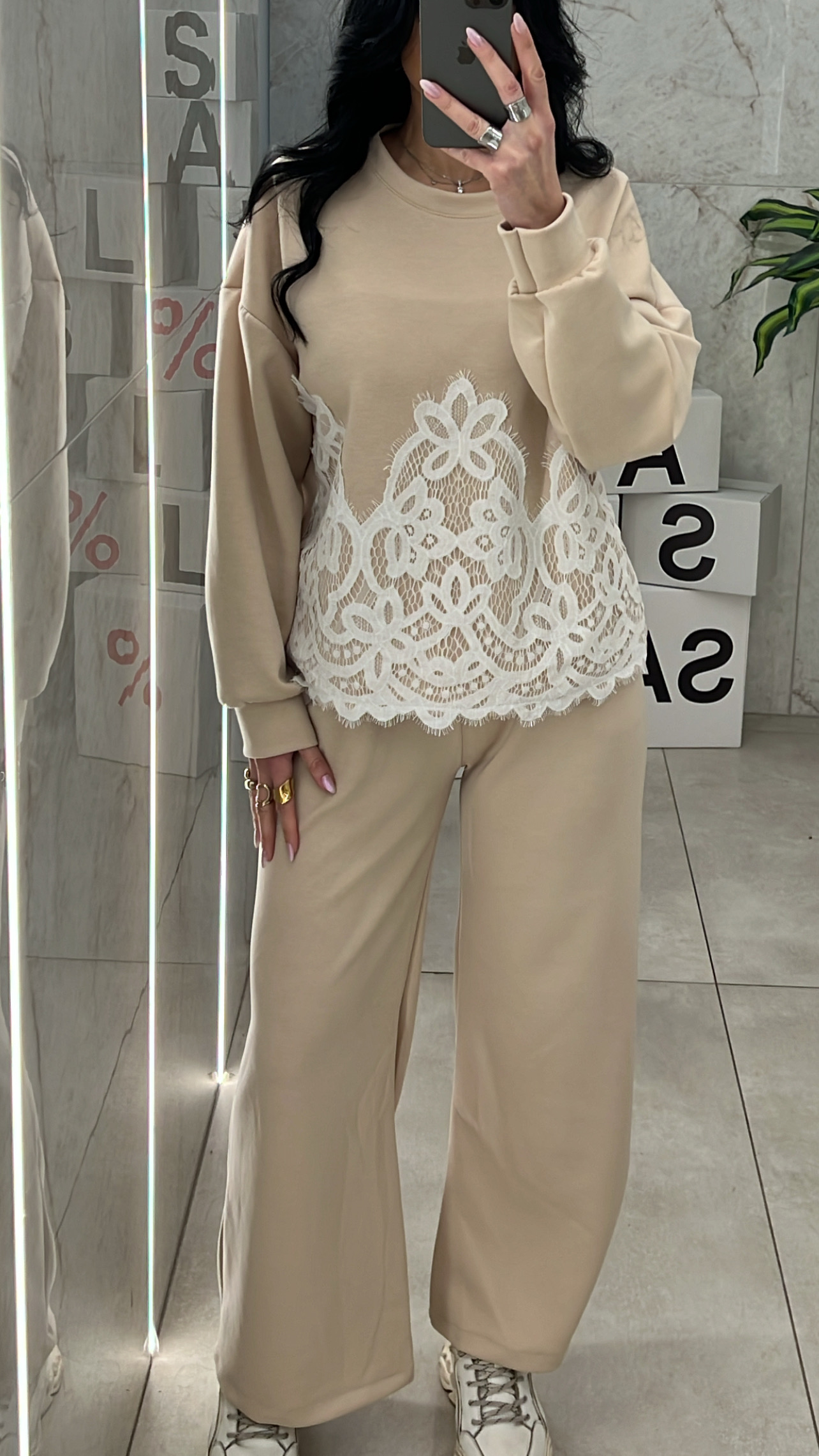 Σετ Φόρμας Με Σχέδιο Δαντέλα 11581/ Μπέζ