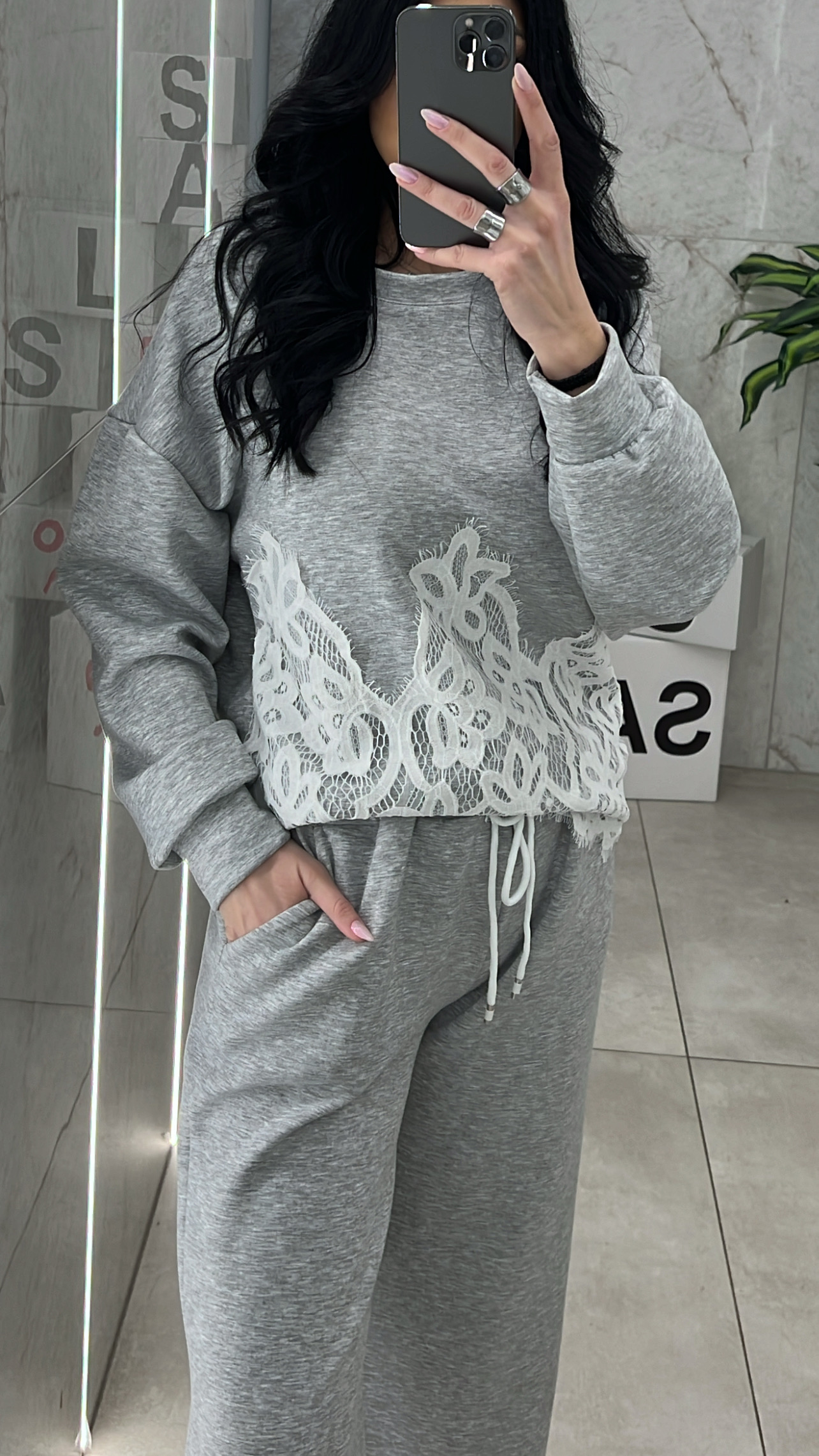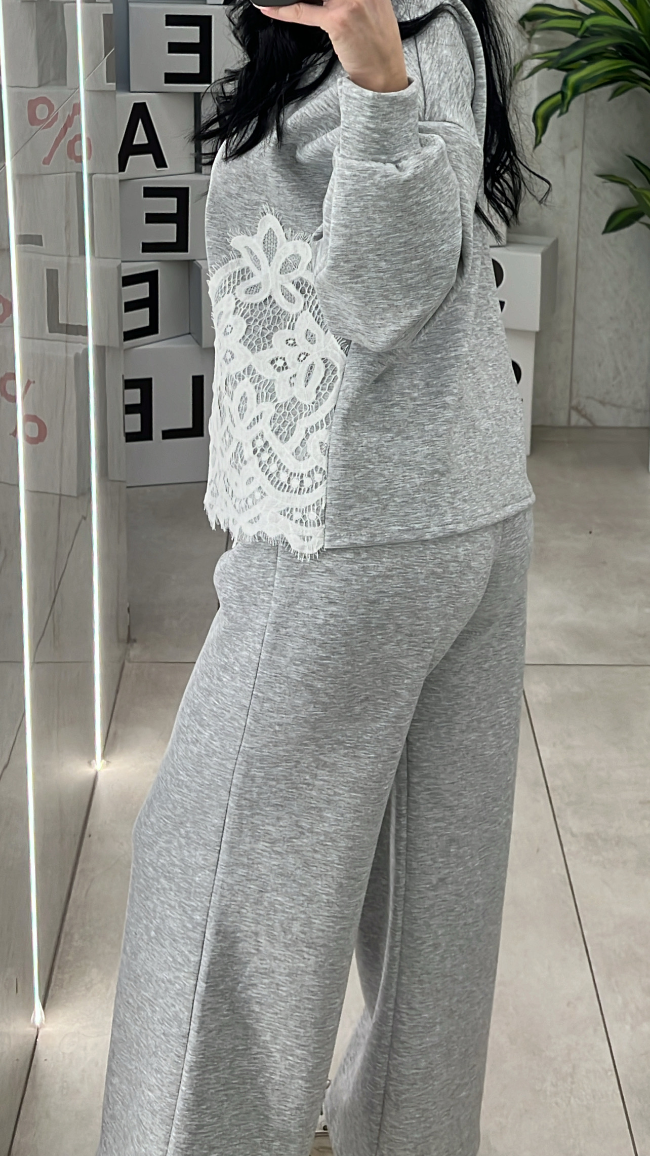 Σετ Φόρμας Με Σχέδιο Δαντέλα 11581/ Γκρί