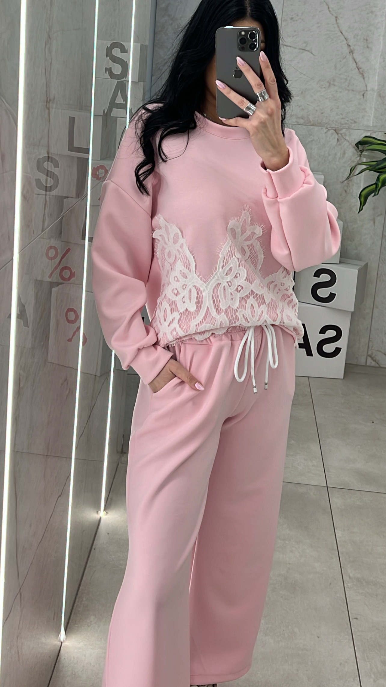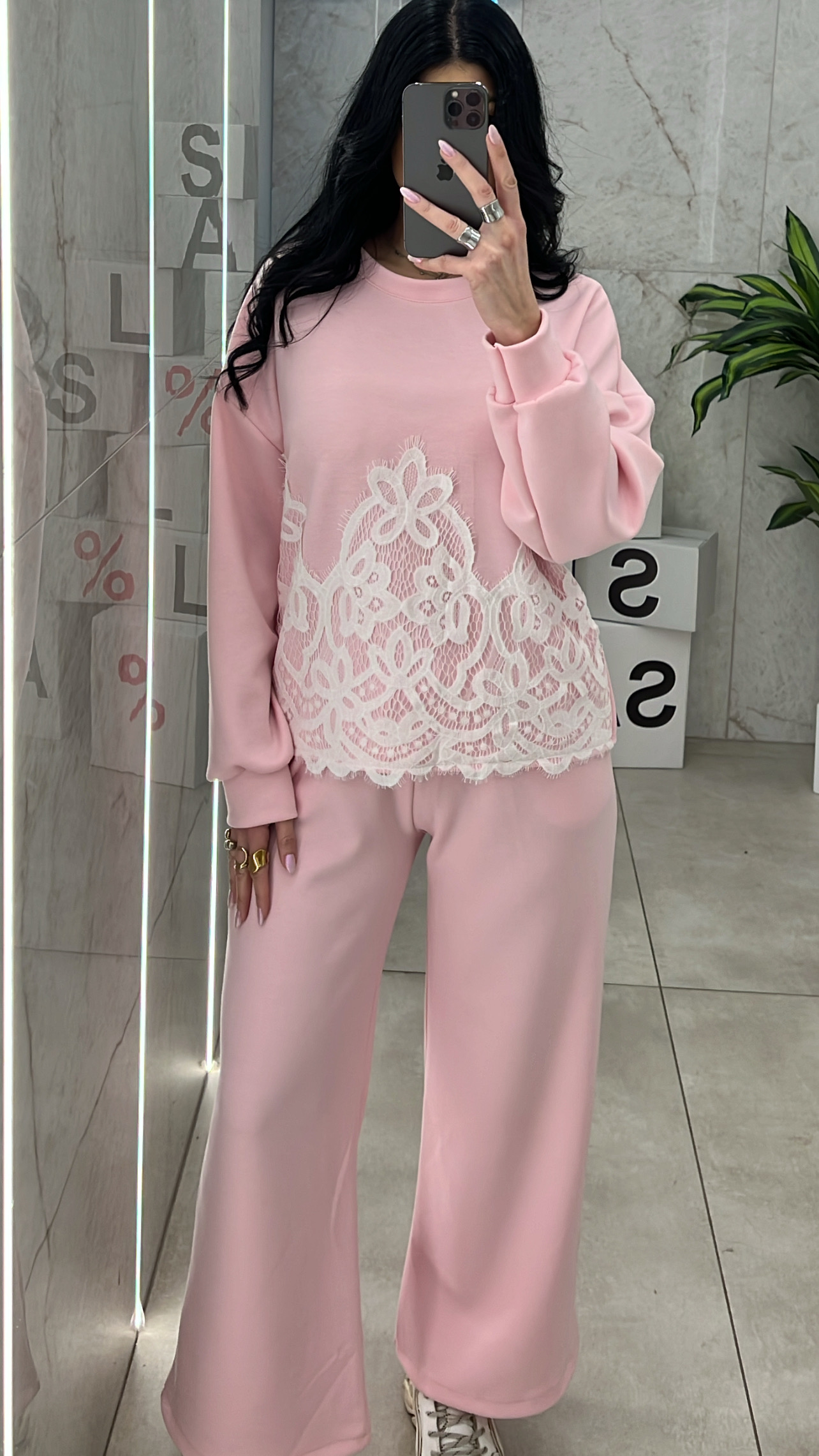 Σετ Φόρμας Με Σχέδιο Δαντέλα 11581/ Ρόζ