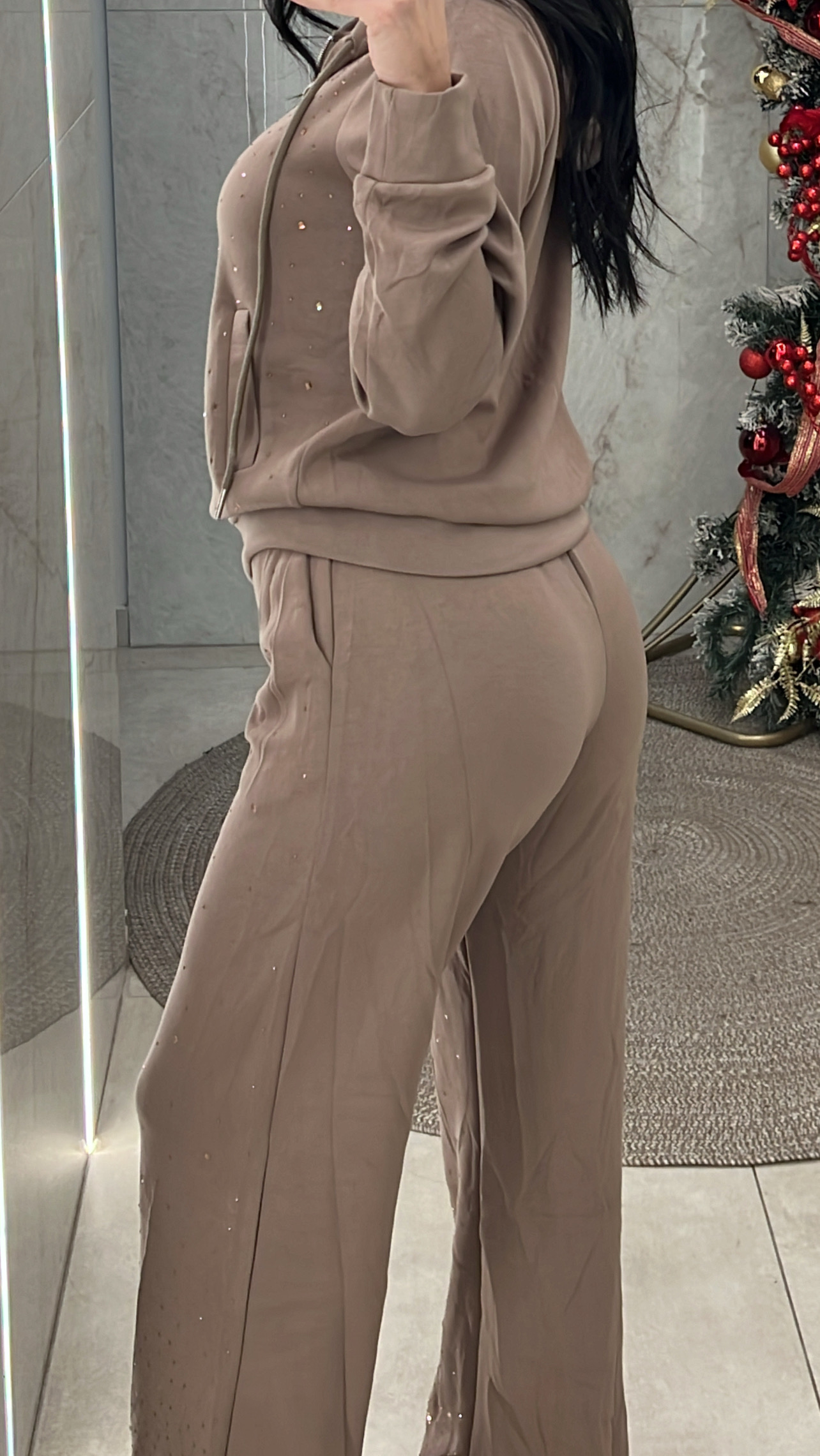 Σετ φόρμας με στρας με ζακέτα με κουκούλα και τσέπες και παντελόνι με λάστιχο στη μέση και κορδόνι