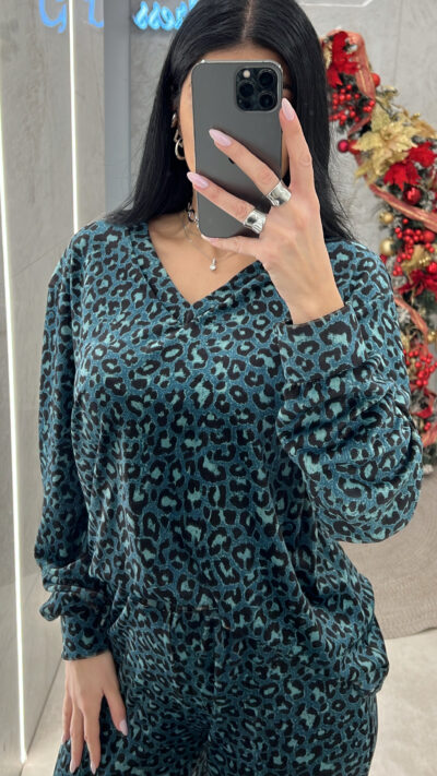 Σετ Βελουτέ Animal Print 02481/Πετρόλ