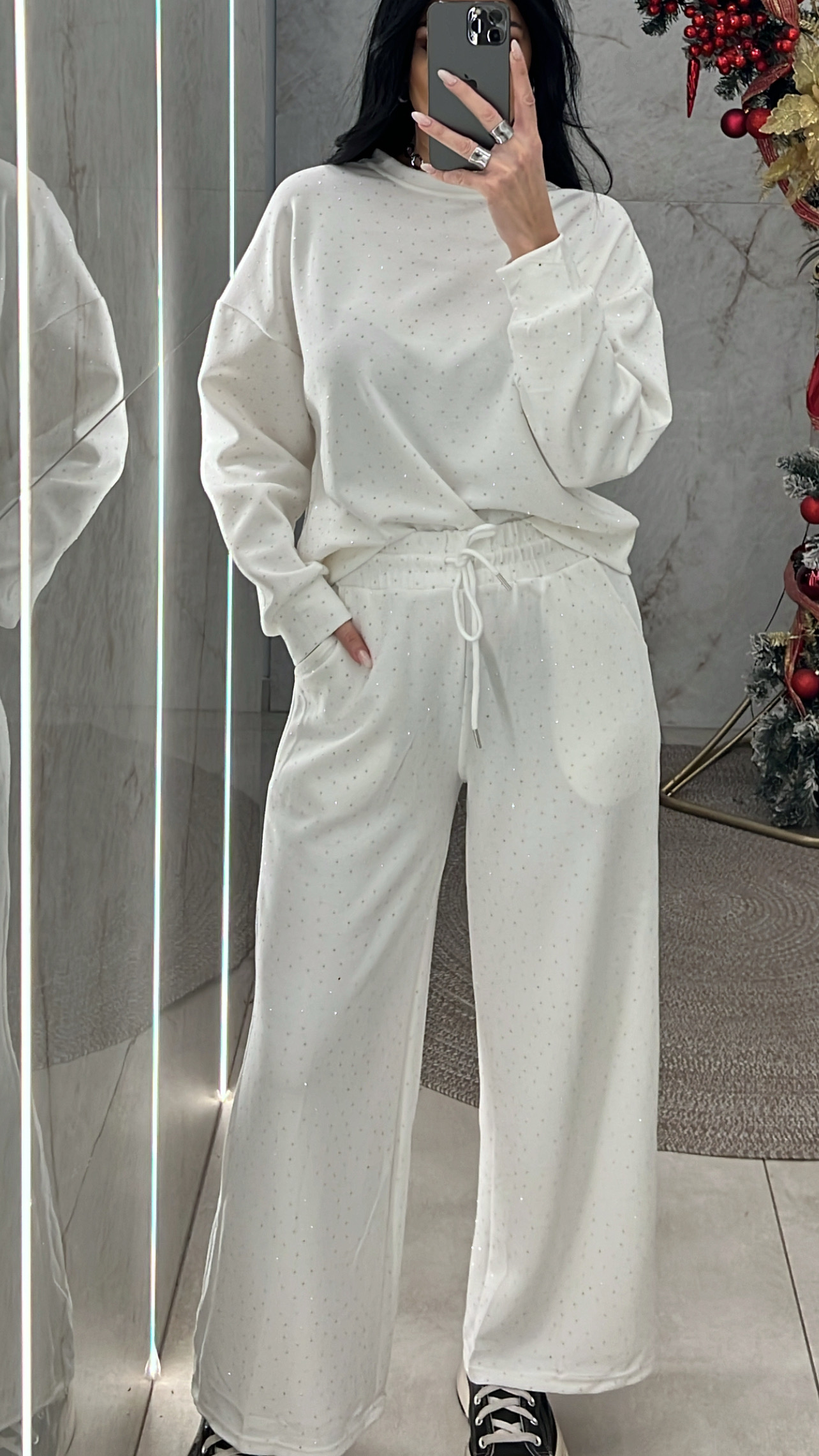 Σετ Φόρμας με στρας το παντελόνι έχει λάστιχο στη μέση και κορδόνι και τσέπες
