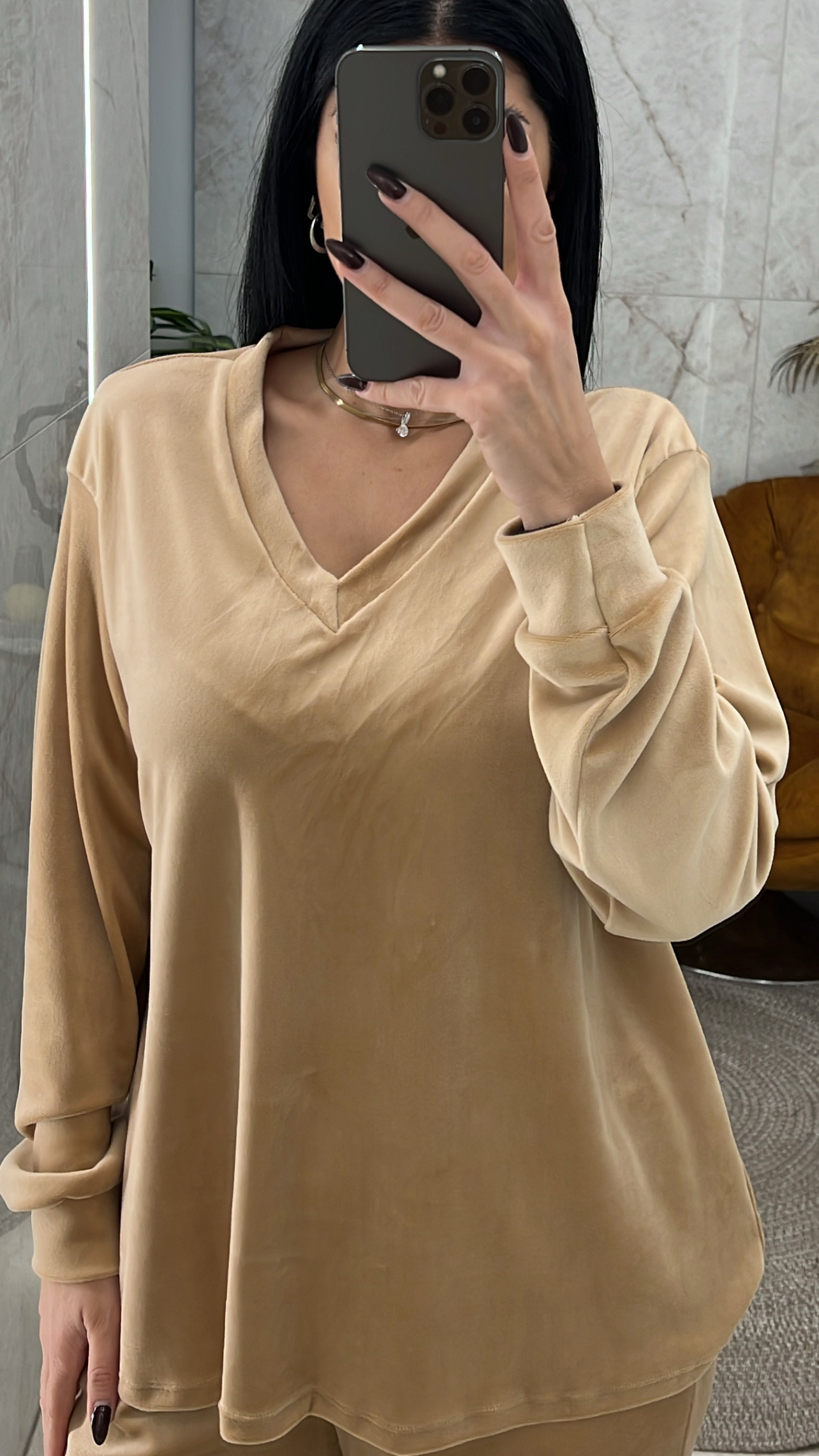 Σετ φόρμας βελουτέ 2489/Μπεζ