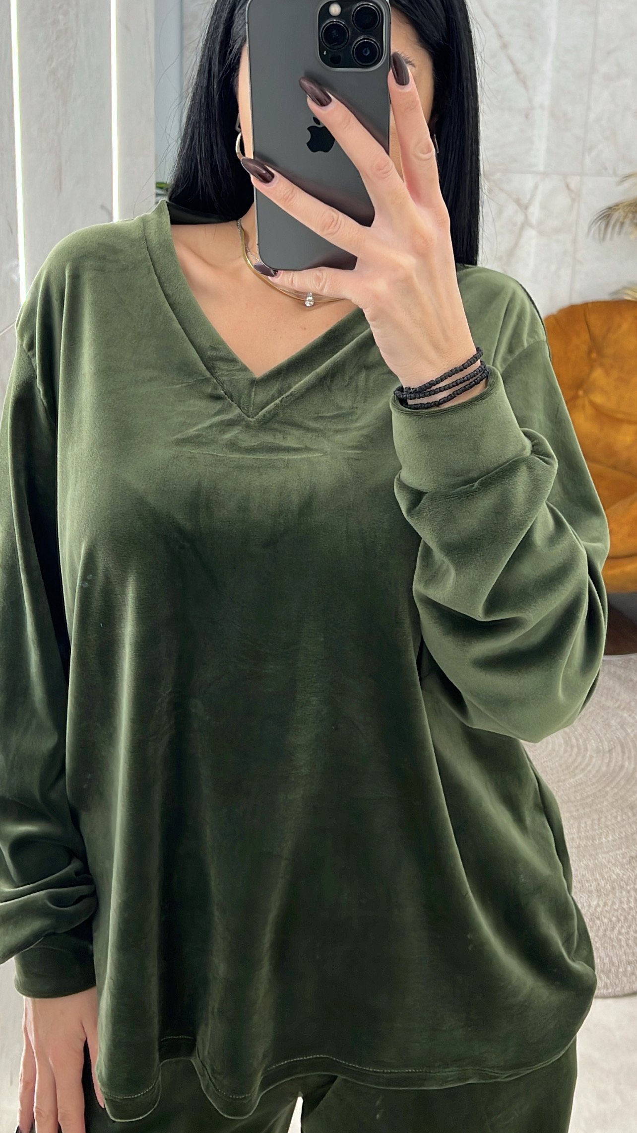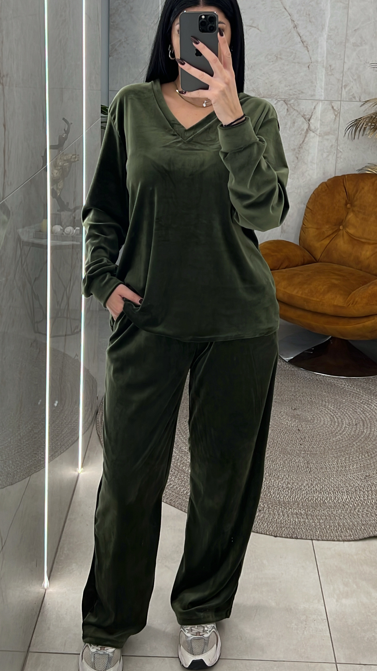 Σετ βελουτέ φόρμα.Το παντελόνι διαθέτει λάστιχο στην μέση και έχει τσέπες