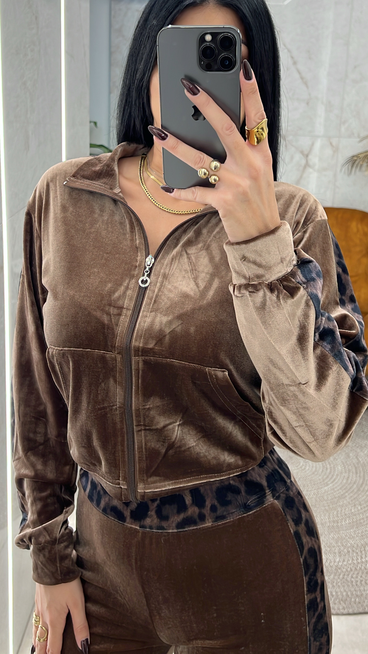 Σετ Φόρμας Βελουτέ Λεοπάρ Ρίγα/Καφέ