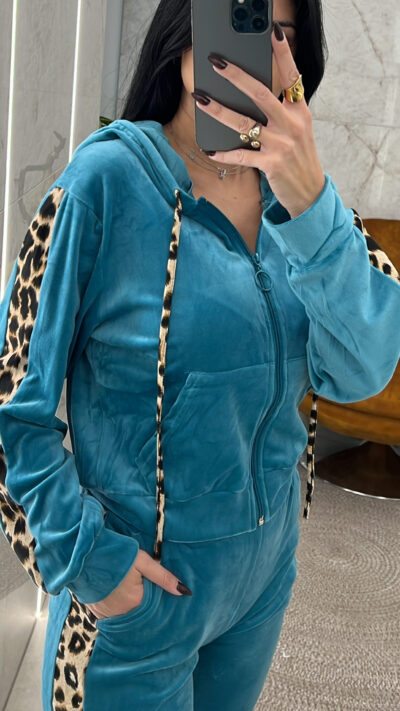 Σετ φόρμας βελουτέ με animal λεπτομέρειες 8222/Πετρόλ