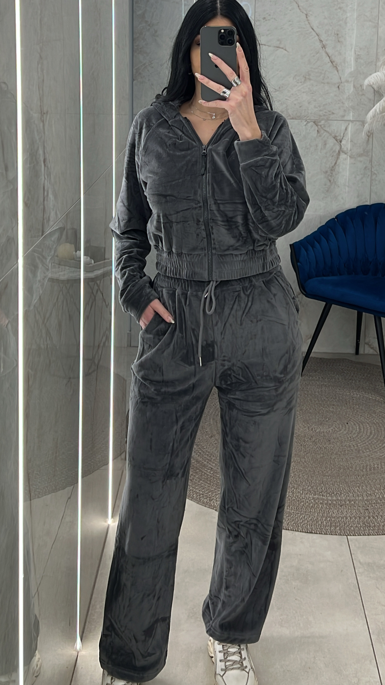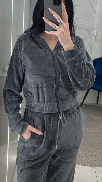 Σετ φόρμας βελουτέ με επένδυση Η27113/Ανθρακί
