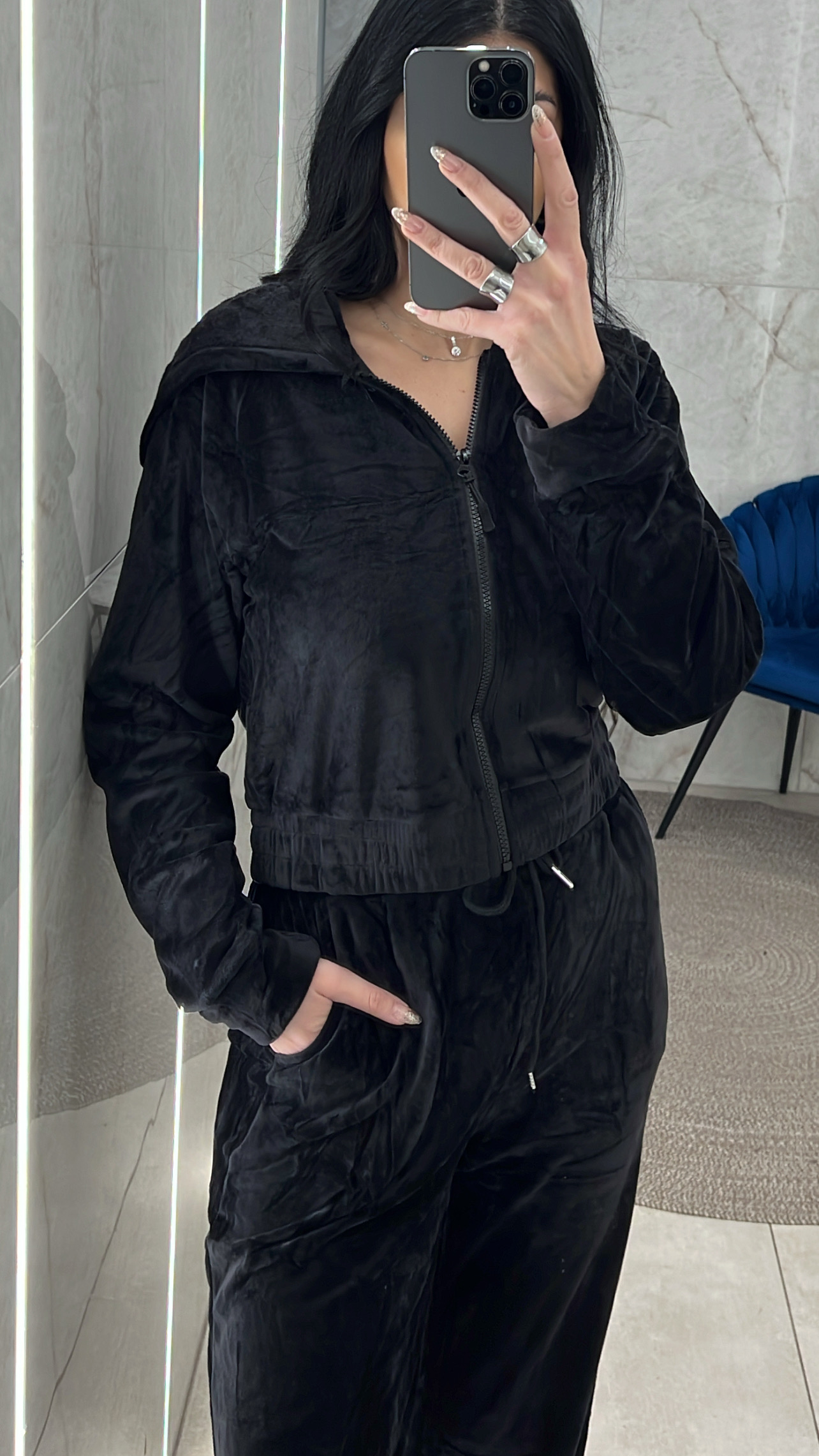 Σετ φόρμας βελουτέ με επένδυση Η27113/Μαύρο