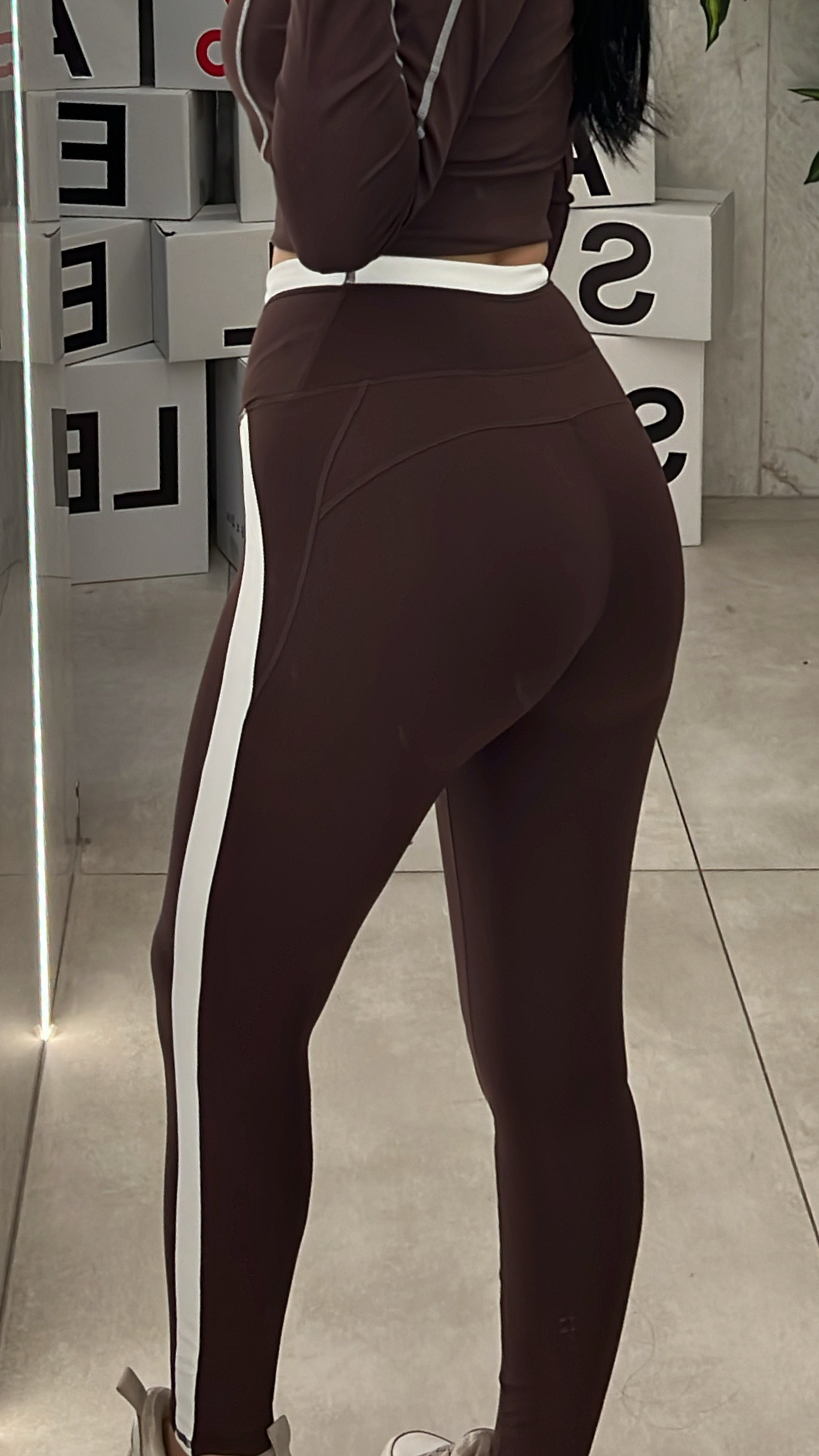 Σετ γυμναστικής με λευκές γραμμές ,ψηλόμεσο κολαν και μπλούζα με φερμουάρ .