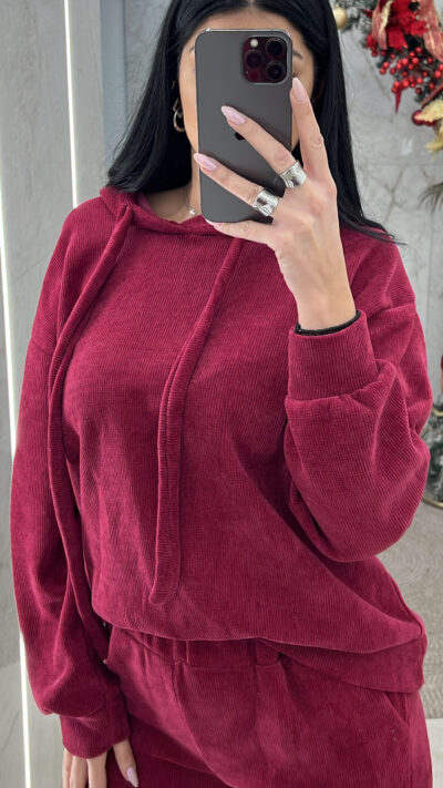 Σετ φόρμας βελουτέ παντελόνι με λάστιχο στη μέση και τσέπες και μπλούζα με κουκούλα