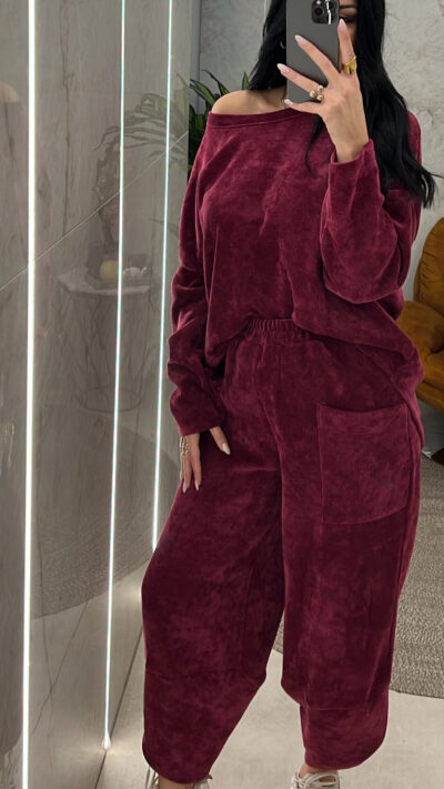 Σετ φόρμα βελουτέ 2489/Μπορντό