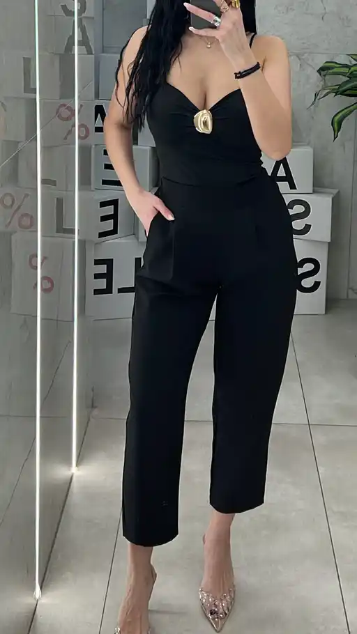 Σετ με αμάνικο γιλέκο ,διαθέτει βατες και κλεινει μπροστά με κουμπί και παντελόνι με λάστιχο στην μέση και τσέπες .