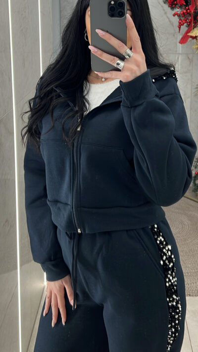 Σετ με παγιέτα.Η ζακέτα έχει εσωτερική επένδυση και παγιέτα στην κουκούλα και το παντελόνι έχει κορδόνι και λάστιχο στην μέση και παγιέτα στο πλάι.