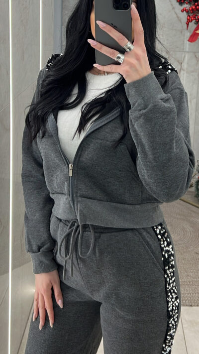 Σετ Φόρμας Ζακέτα Strass-6682/Γκρι