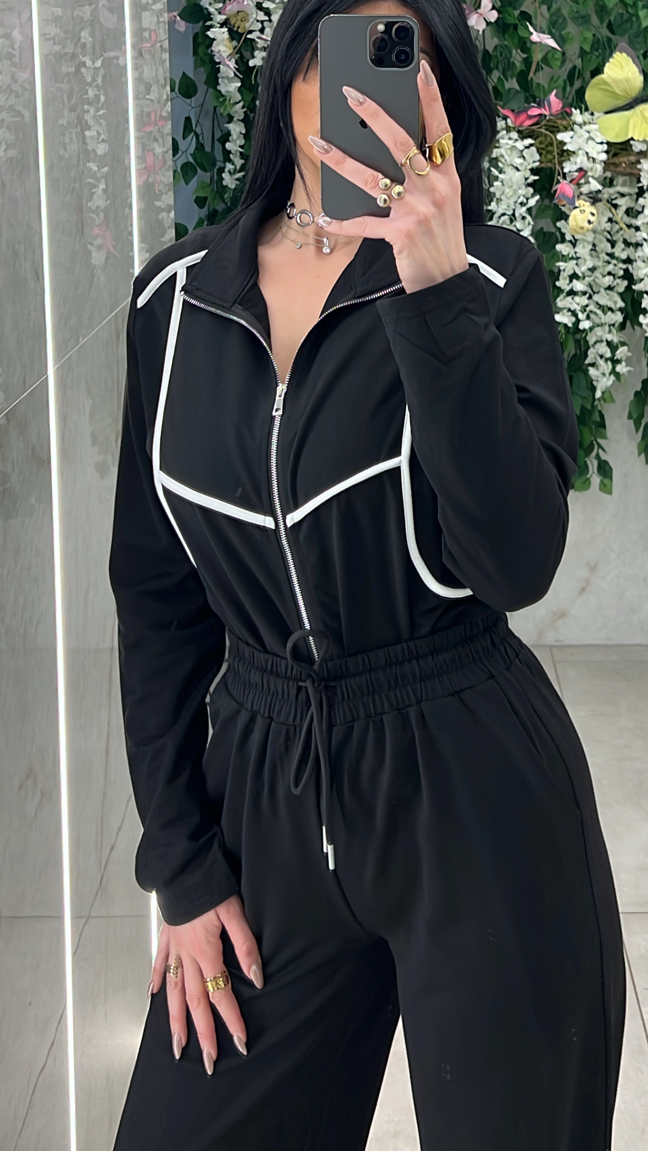 Σετ φορμας ,ζακετα με ριγα και παντελονα με λάστιχο ,κορδόνι και τσέπες στην μέση .