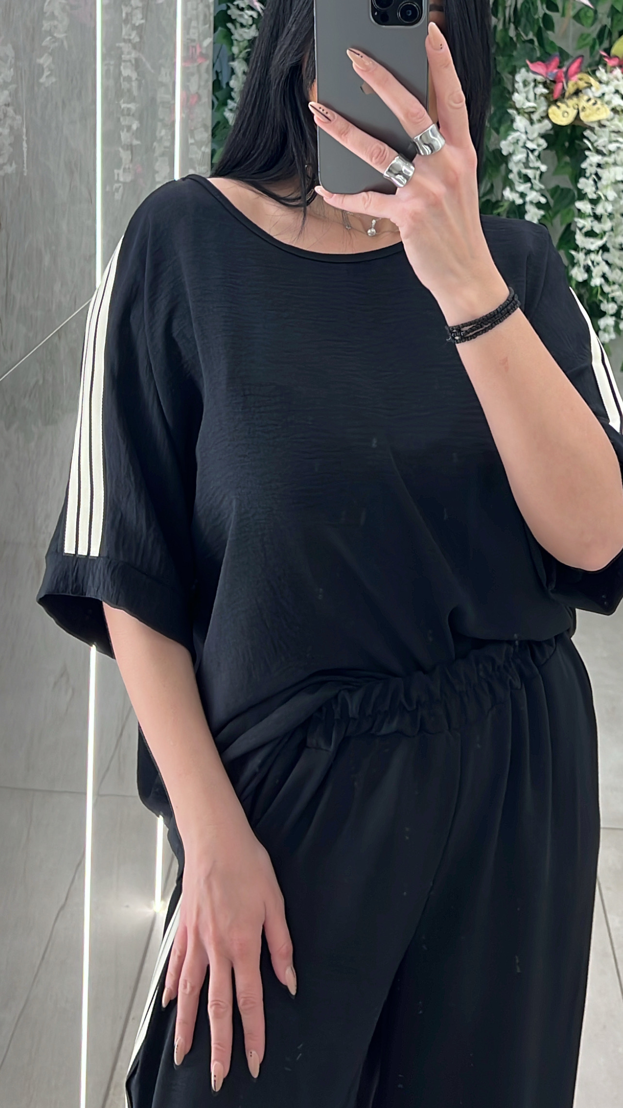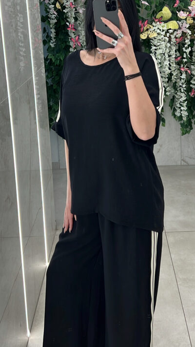 Σετ Με Ριγες Στο Πλαι 26083/ Μαυρο