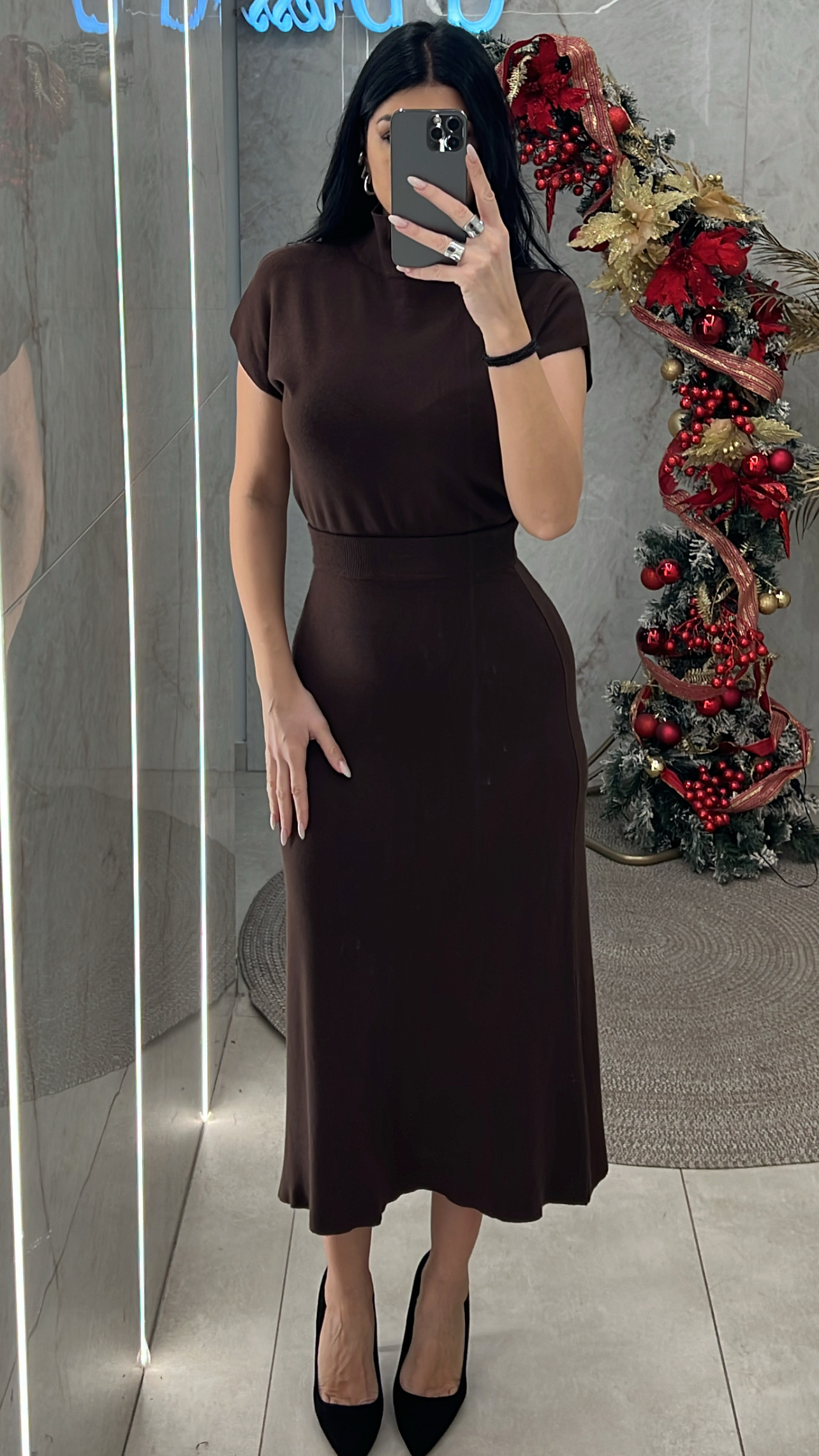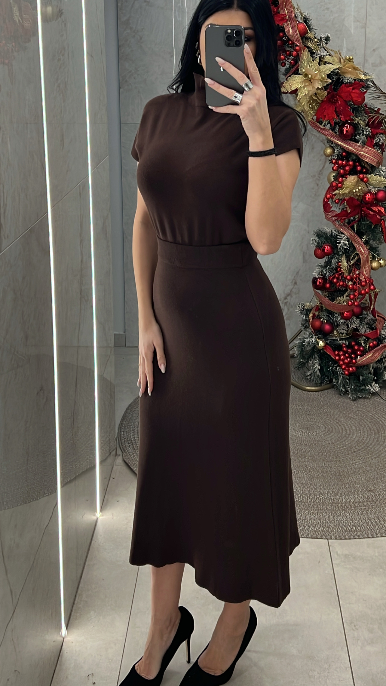 Σετ πλεκτό ελαστικό,Το μπλουζάκι είναι ζιβάγκο και η φούστα έχει λάστιχο στη μέση