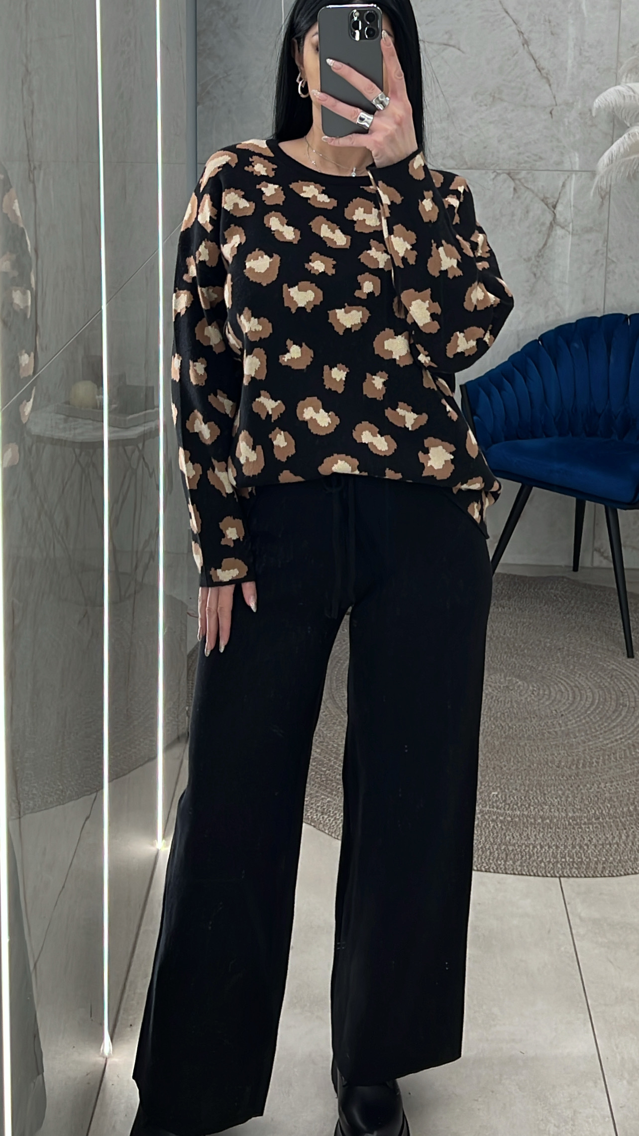 Σετ πλεκτό με λεοπάρ Μπλούζα 25361/Μαύρο