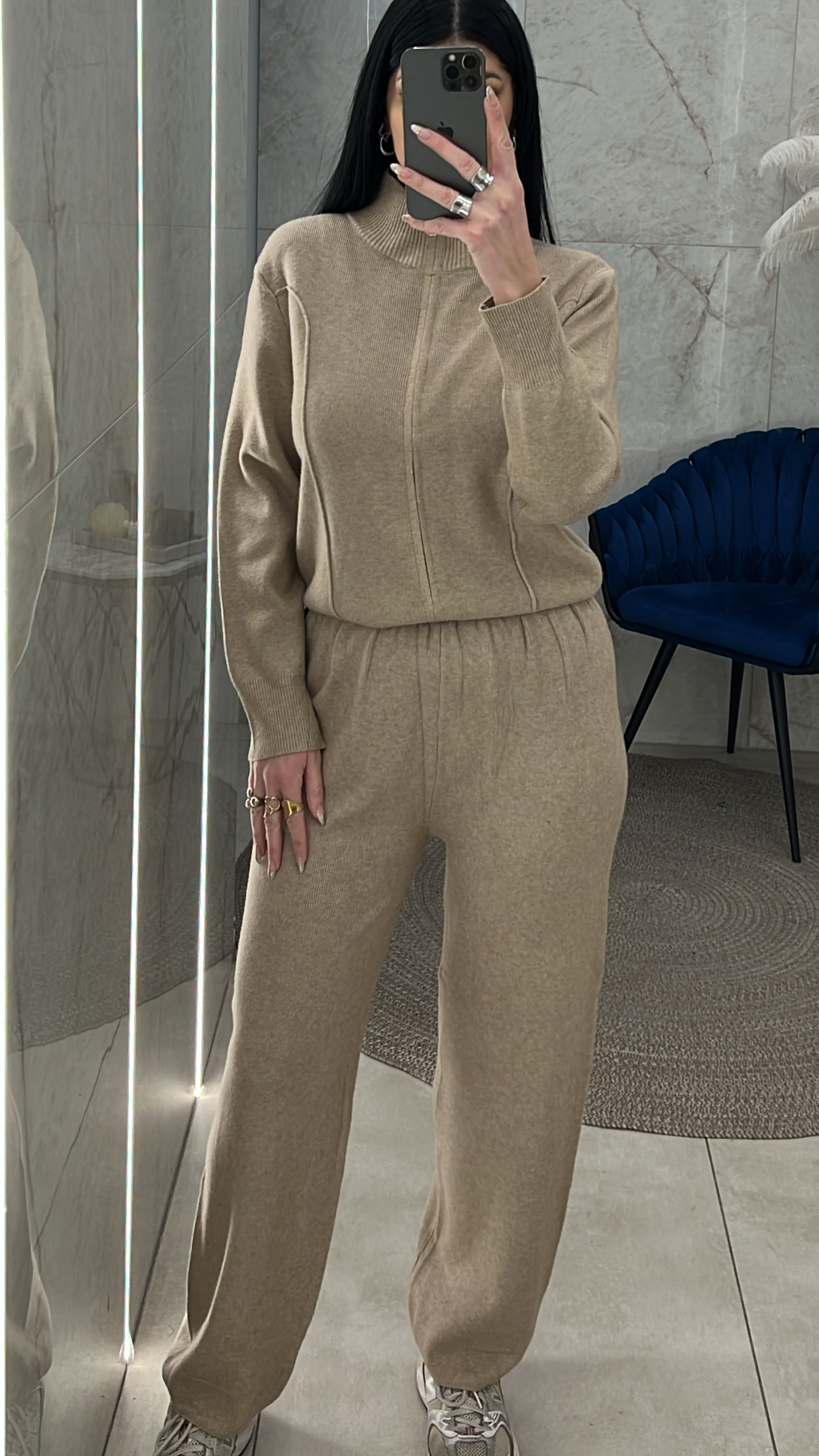 Σετ πλεκτό με ζακέτα με λάστιχο στο τελείωμα και παντελόνι με λάστιχο στη μέση