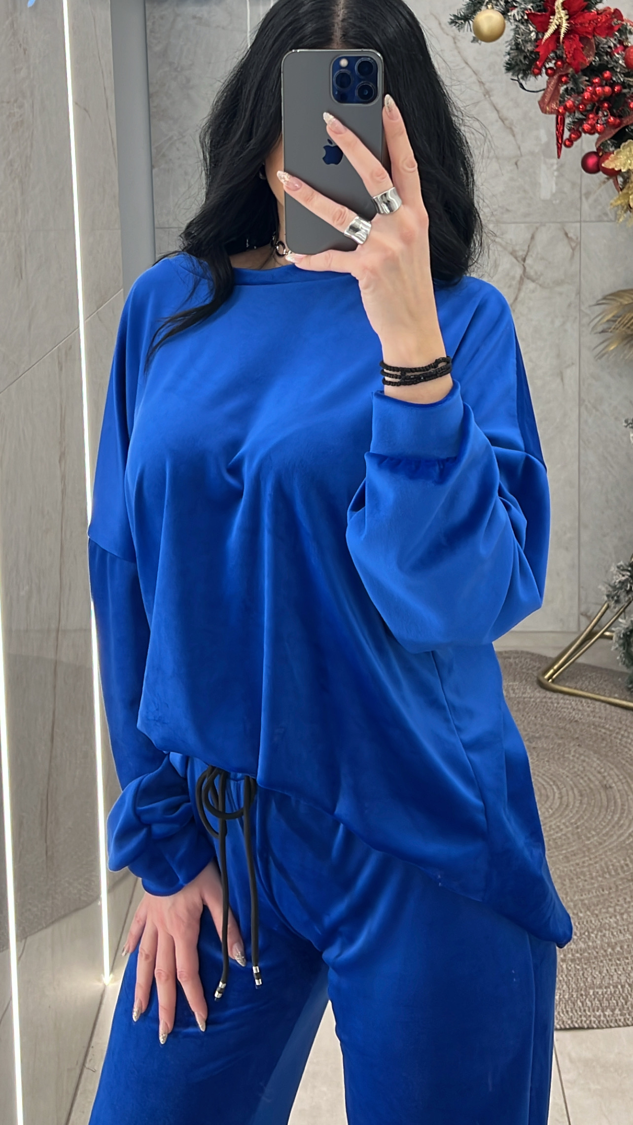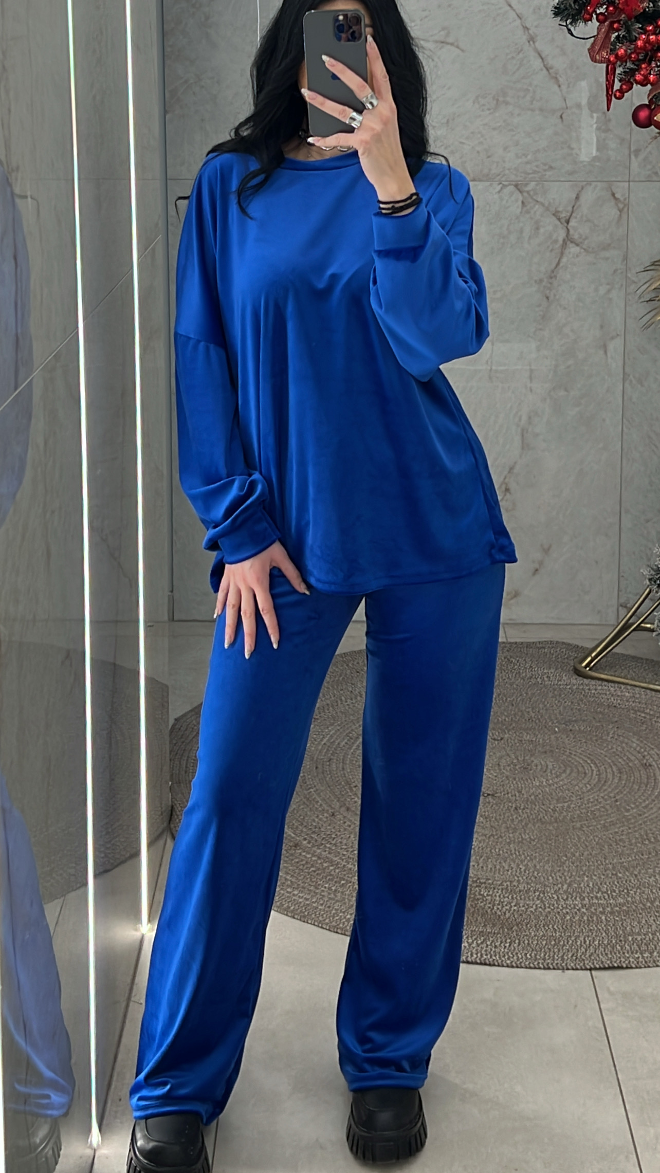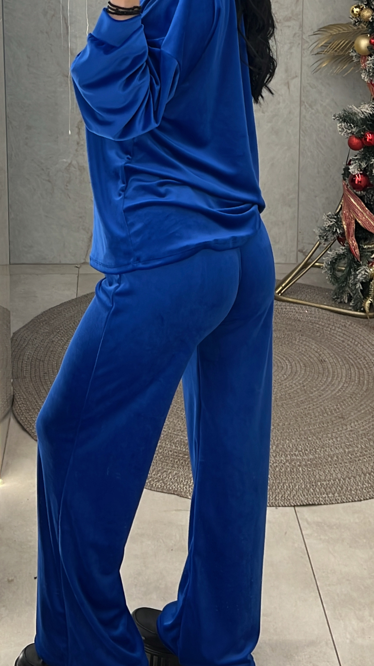 Σετ βελουτέ. Η μπλούζα είναι με λαιμόκοψη και το παντελόνι είναι με λάστιχο και κορδόνι στην μέση