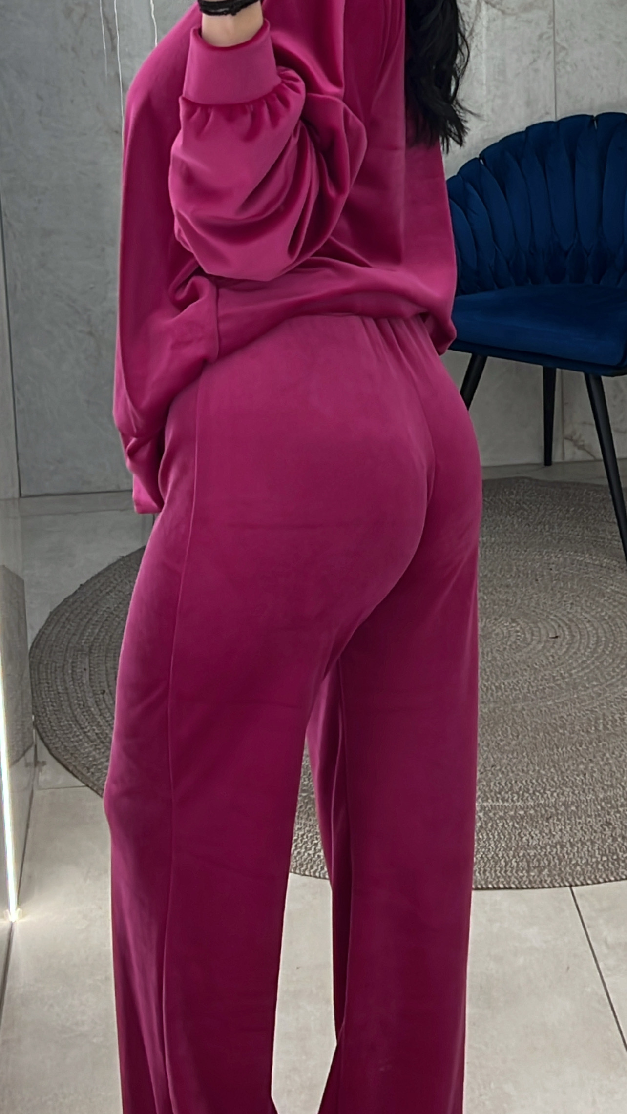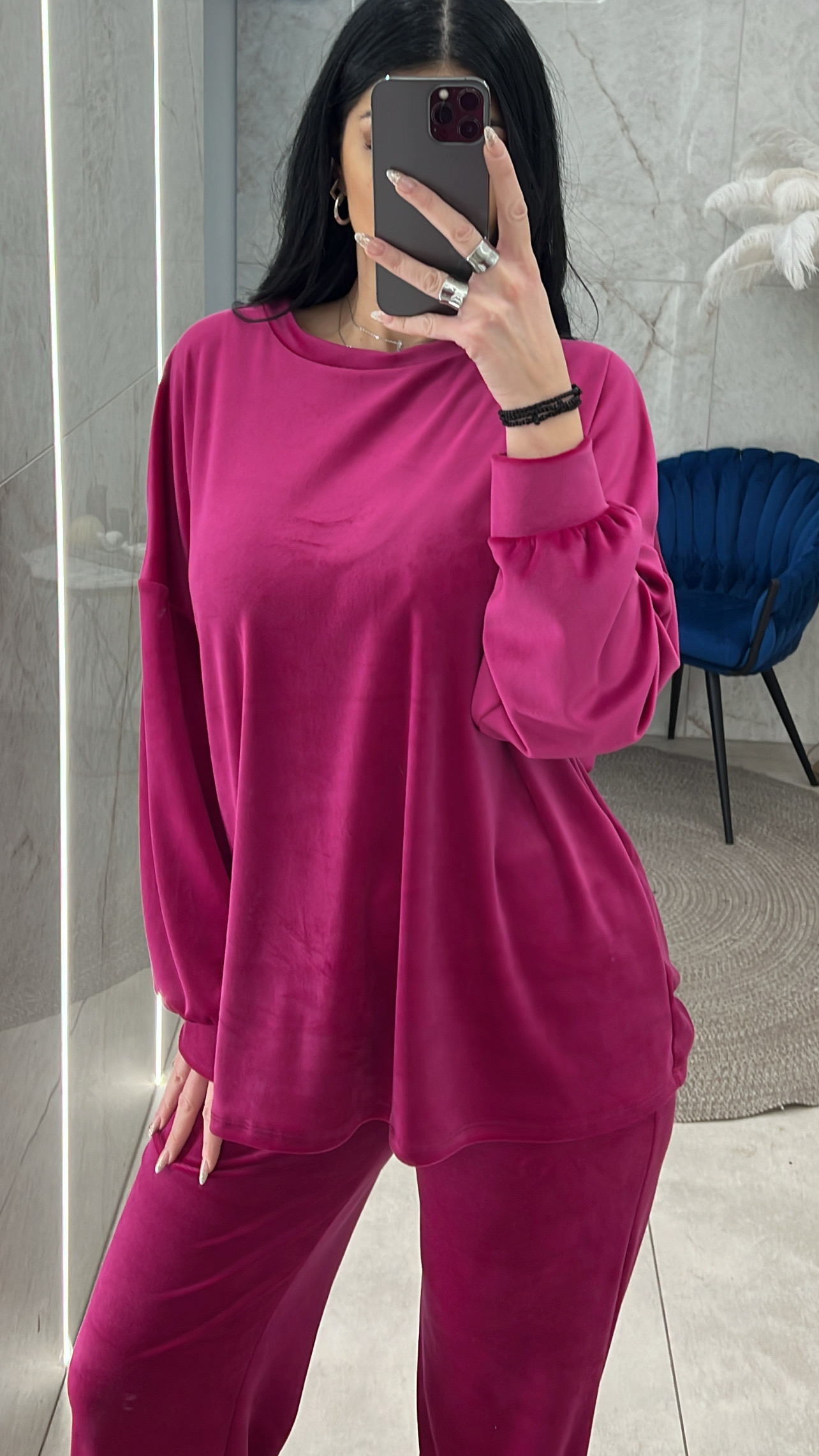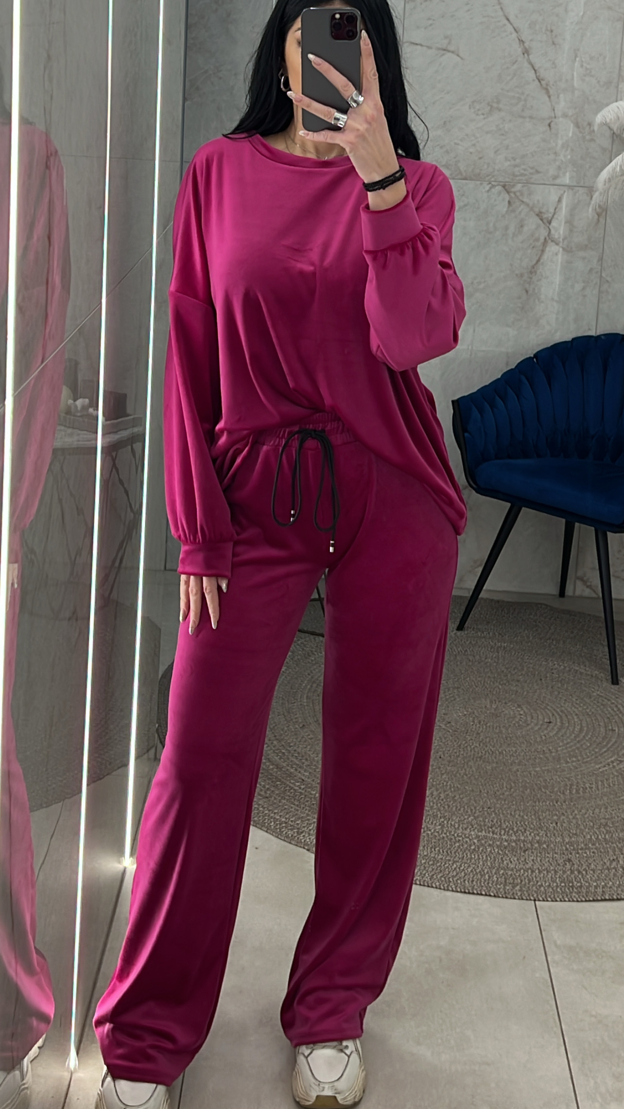Σετ βελουτέ. Η μπλούζα είναι με λαιμόκοψη και το παντελόνι είναι με λάστιχο και κορδόνι στην μέση