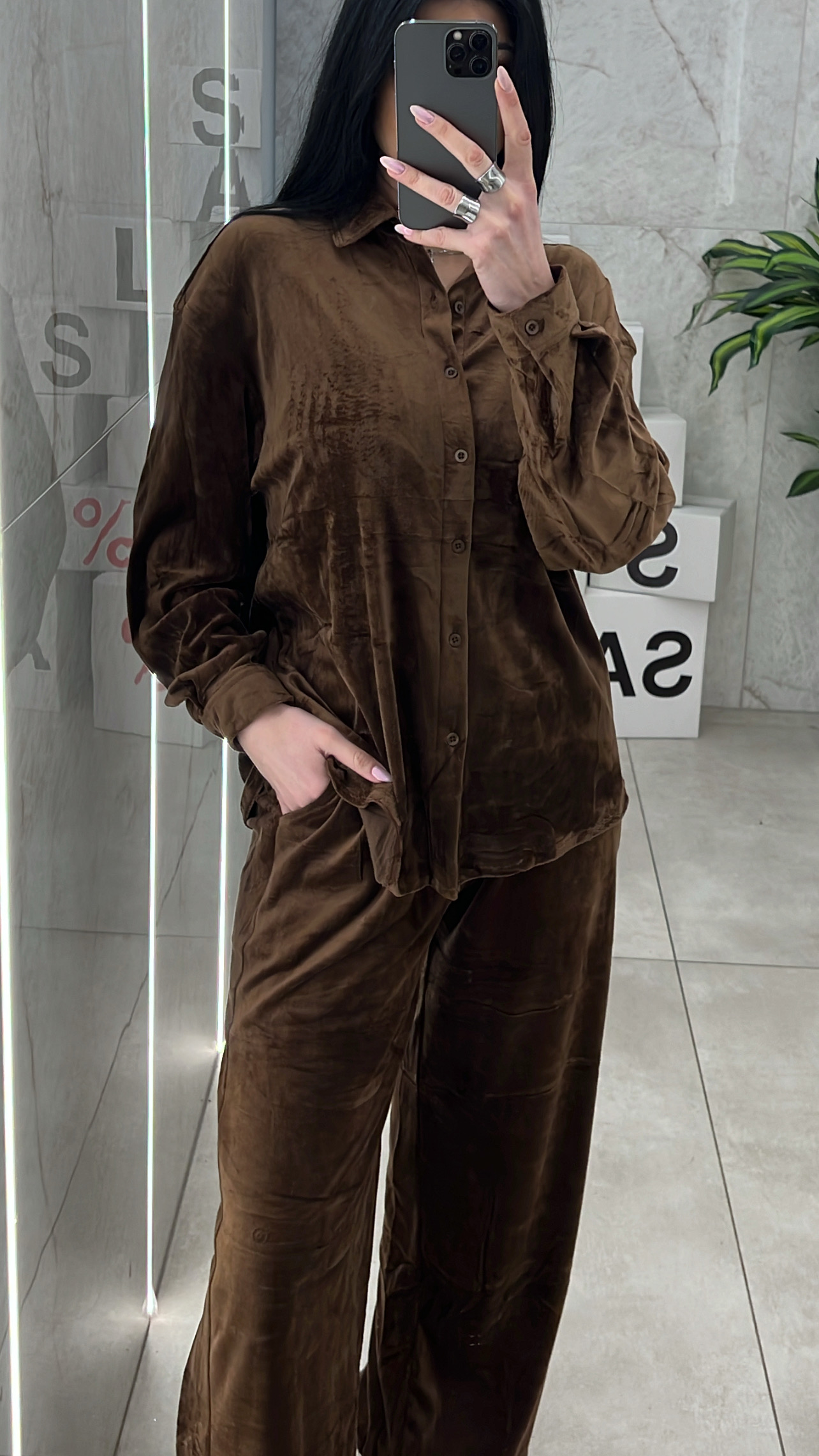 Σετ Φόρμας Βελουτέ 8594/Καφέ