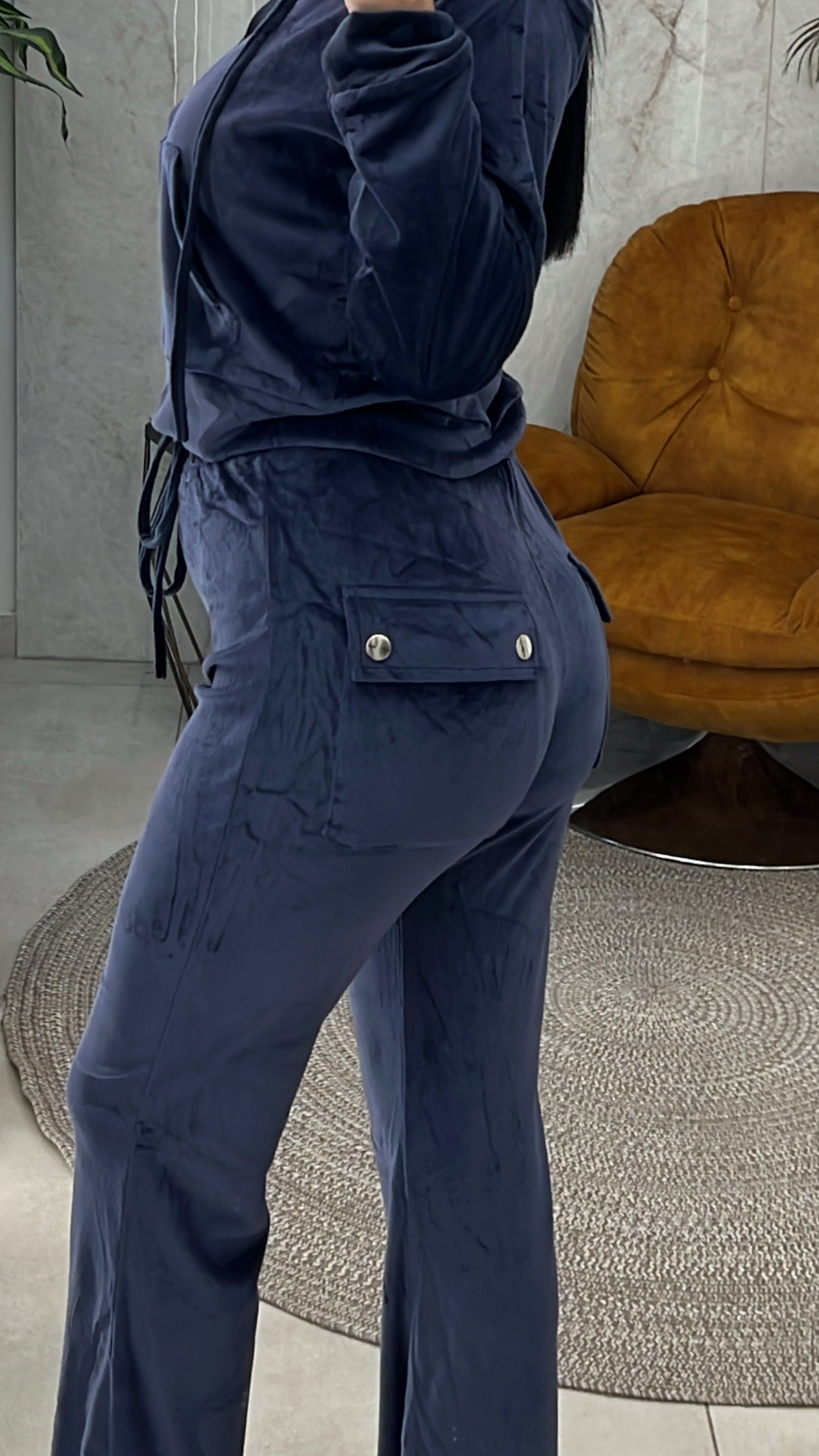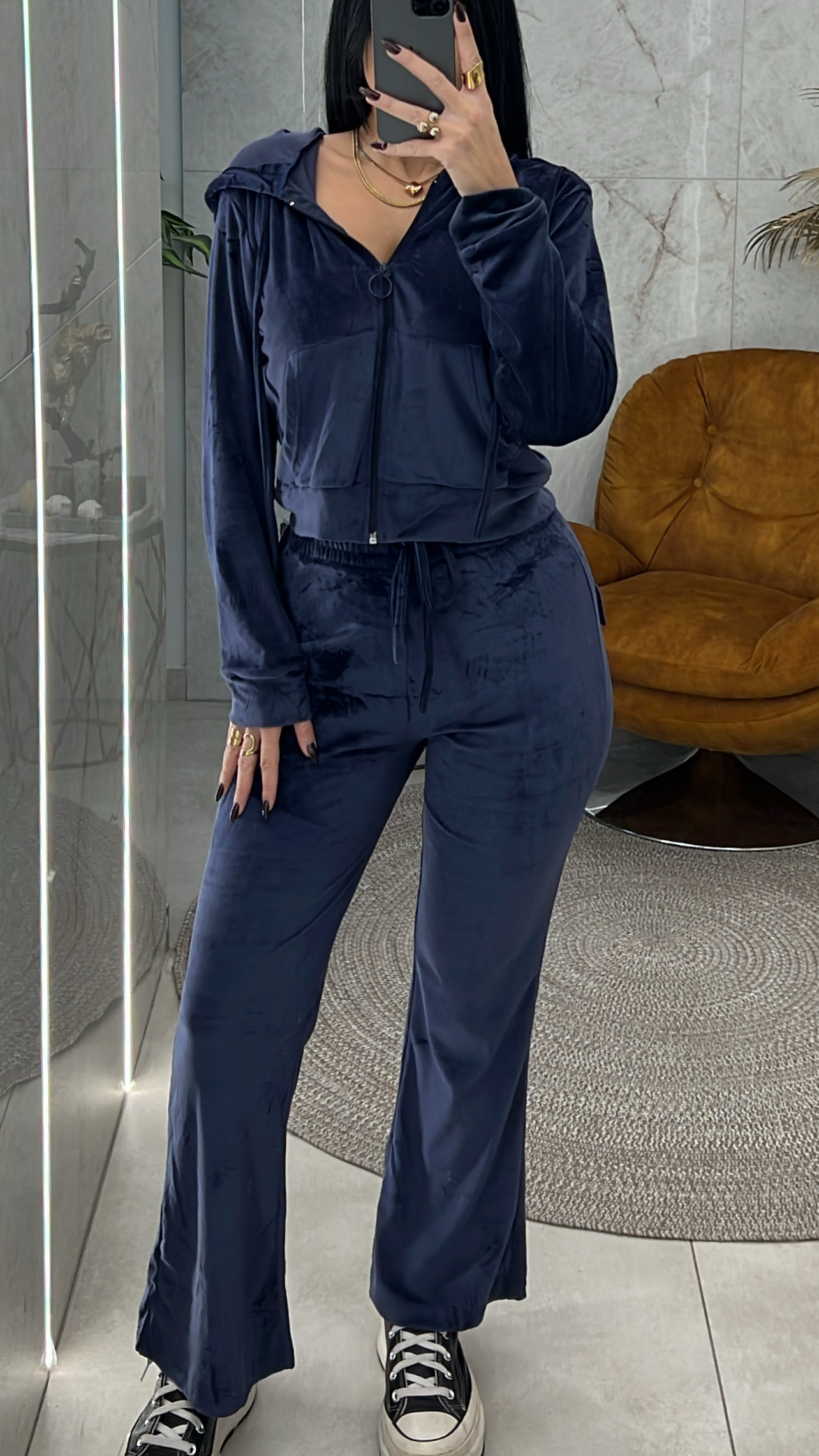 Η ζακέτα διαθέτει ι κουκούλα έχει τσέπες μπροστά και λάστιχο στα μανίκια το παντελόνι έχει λάστιχο και κορδόνι στην μέση και έχει τσέπες πίσω.