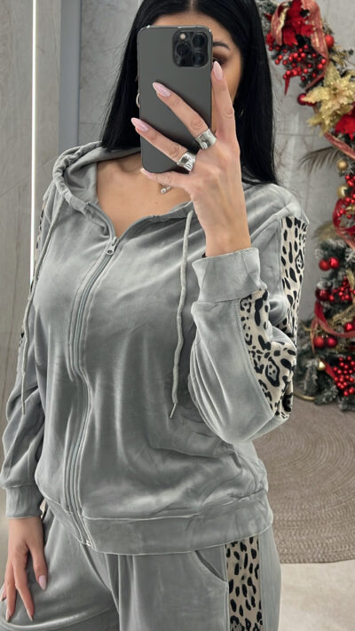 Σετ Βελουτέ με Λεοπάρ Ρίγα 10009/Γκρι ανοιχτό