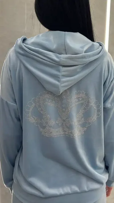 Σετ βελουτέ ,ζακετα με σχεδιο στρας στην πλατη και τσέπες και παντελονι με λαστιχο,κορδόνι στην μέση και τσεπες.