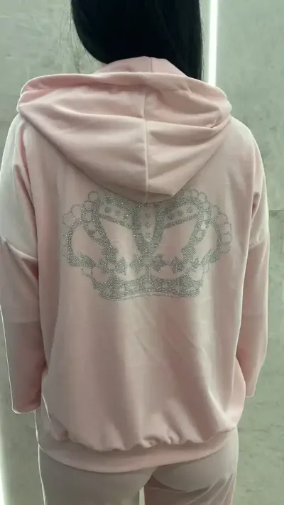 Σετ βελουτέ ,ζακετα με σχεδιο στρας στην πλατη και τσέπες και παντελονι με λαστιχο,κορδόνι στην μέση και τσεπες.