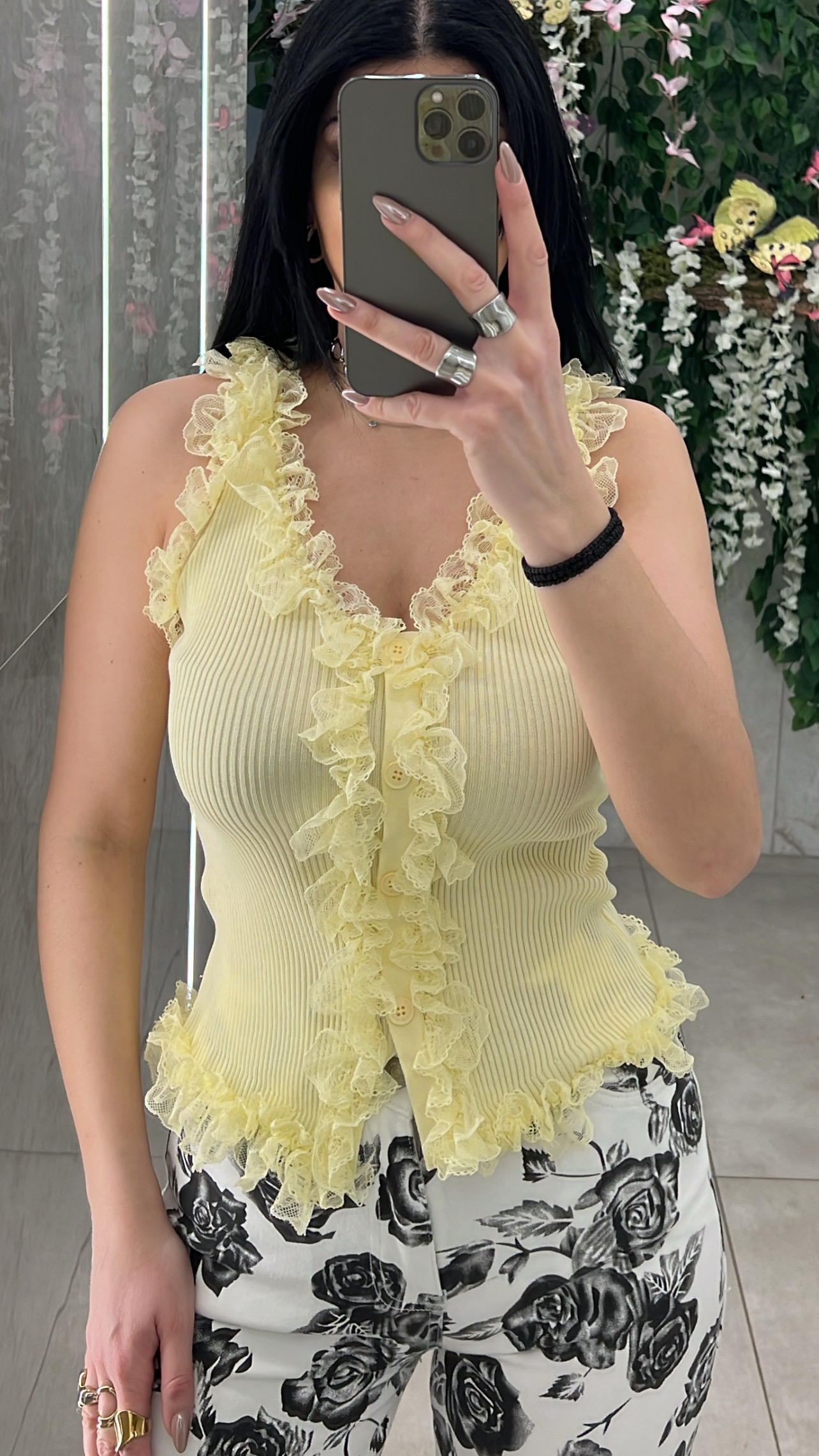 Τοπ αμάνικο με διακοσμητικα κουμπια και λεπτομέρειες δαντέλα .