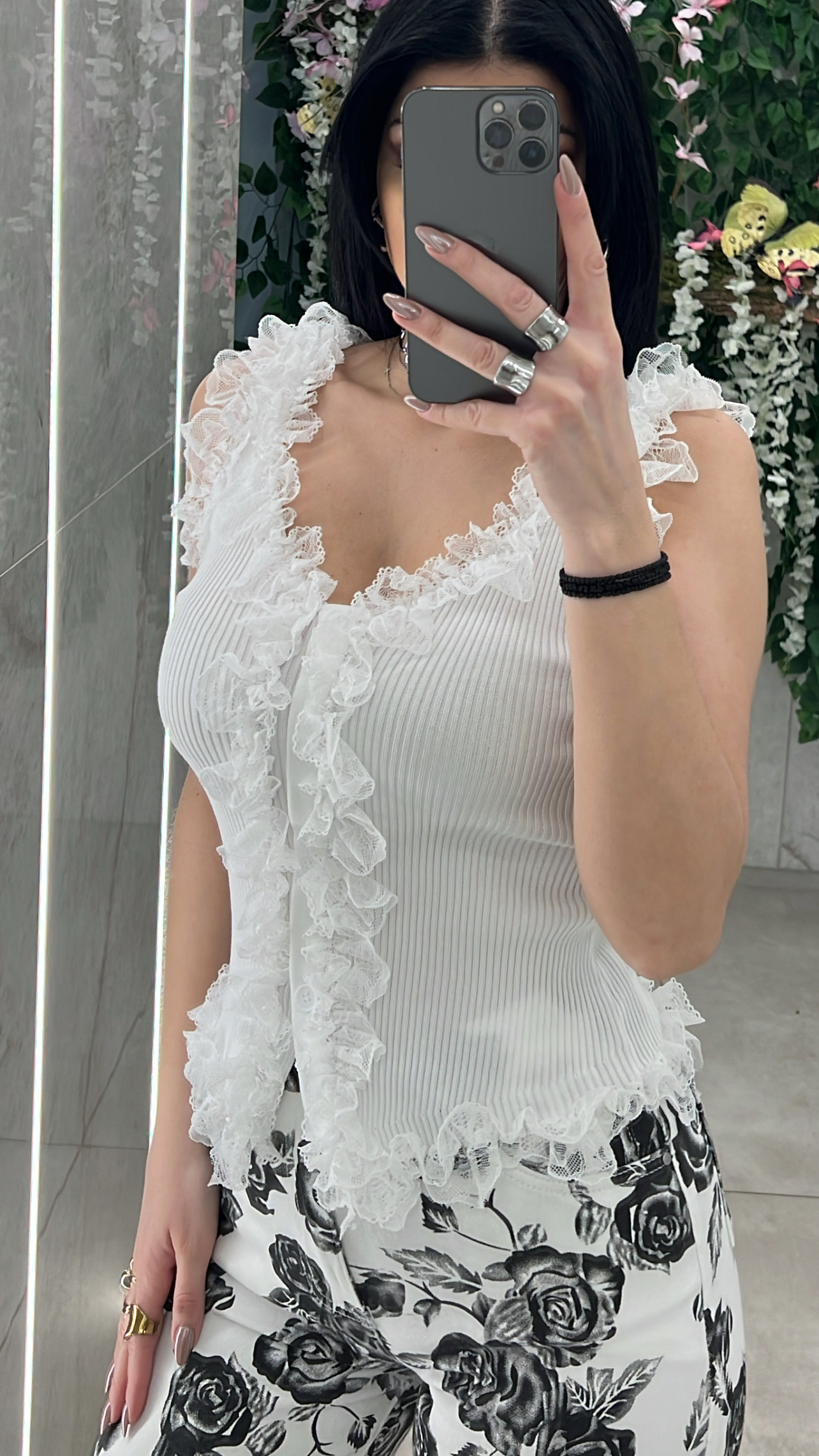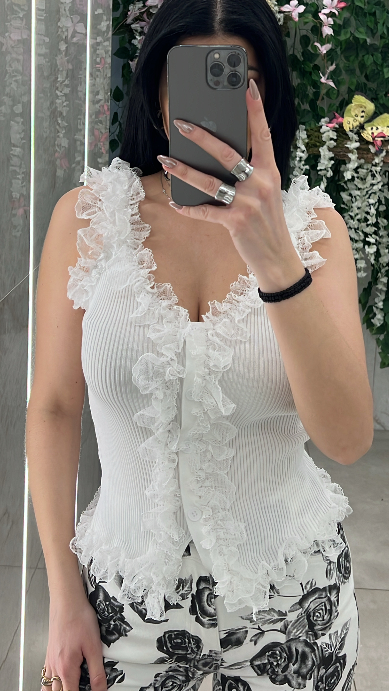 Τοπ αμάνικο με διακοσμητικα κουμπια και λεπτομέρειες δαντέλα .