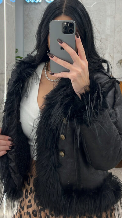 Τζάκετ μαύρο με εσωτερική γούνα και λεπτομέρειες με κουμπιά χρυσά μπροστά διακοσμητικά δεν κλείνει μπροστά