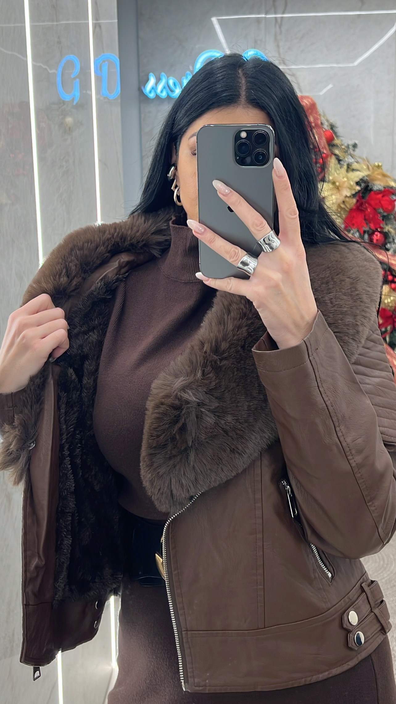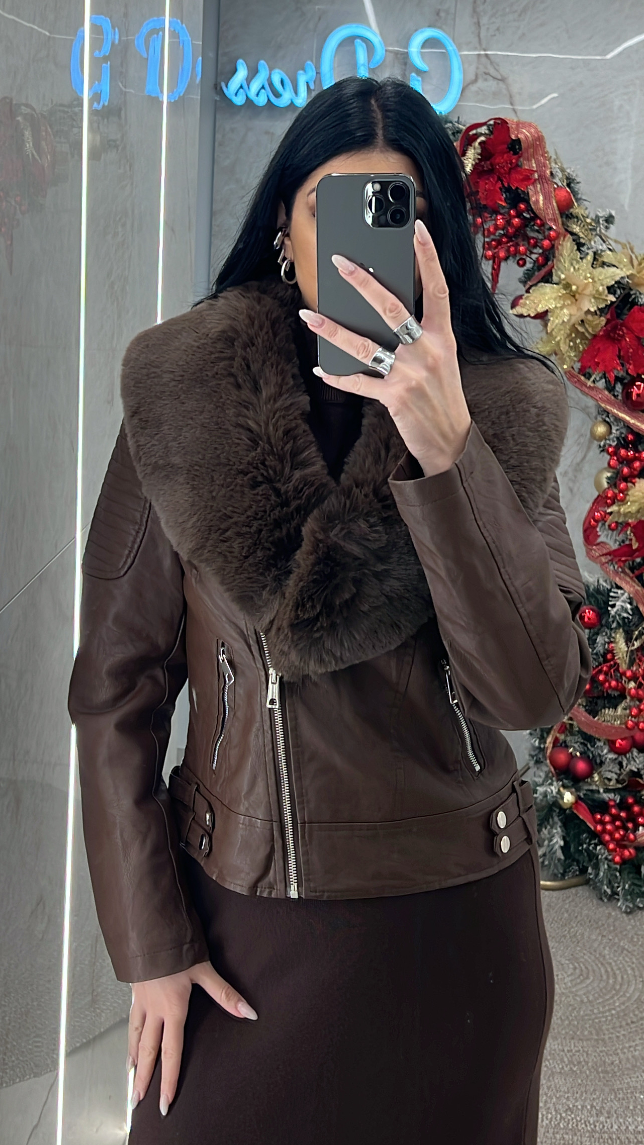Τζάκετ με εσωτερική γούνα και γούνα στον γιακά ο οποίος είναι αποσπώμενος