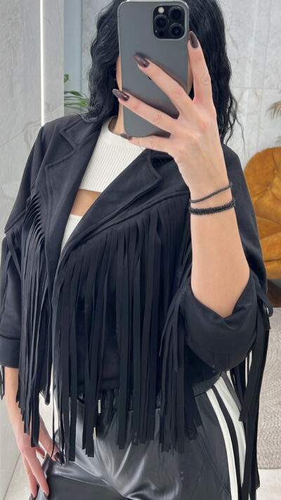 Τζάκετ με κρόσια suede 21698/Μαύρο