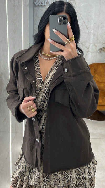Τζάκετ Oversized με Ξέφτια/Καφέ