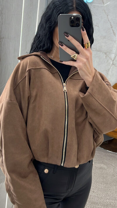 Τζάκετ σουέτ oversized με τσέπες μπροστά κλείνει με φερμουάρ