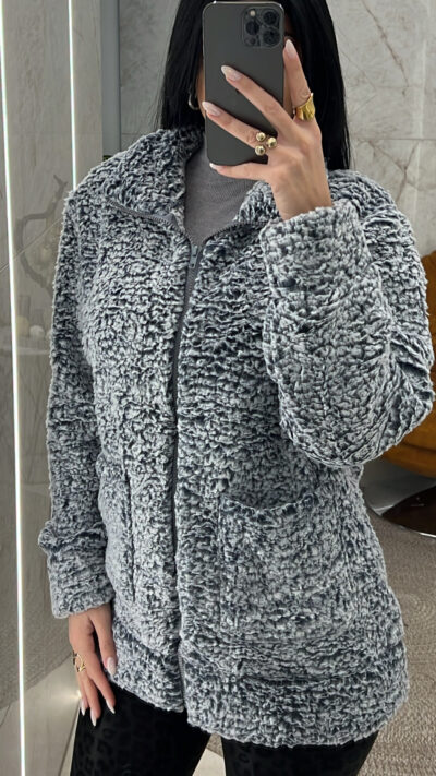 Τζάκετ Τeddy  μπλε με τσέπες μπροστά
