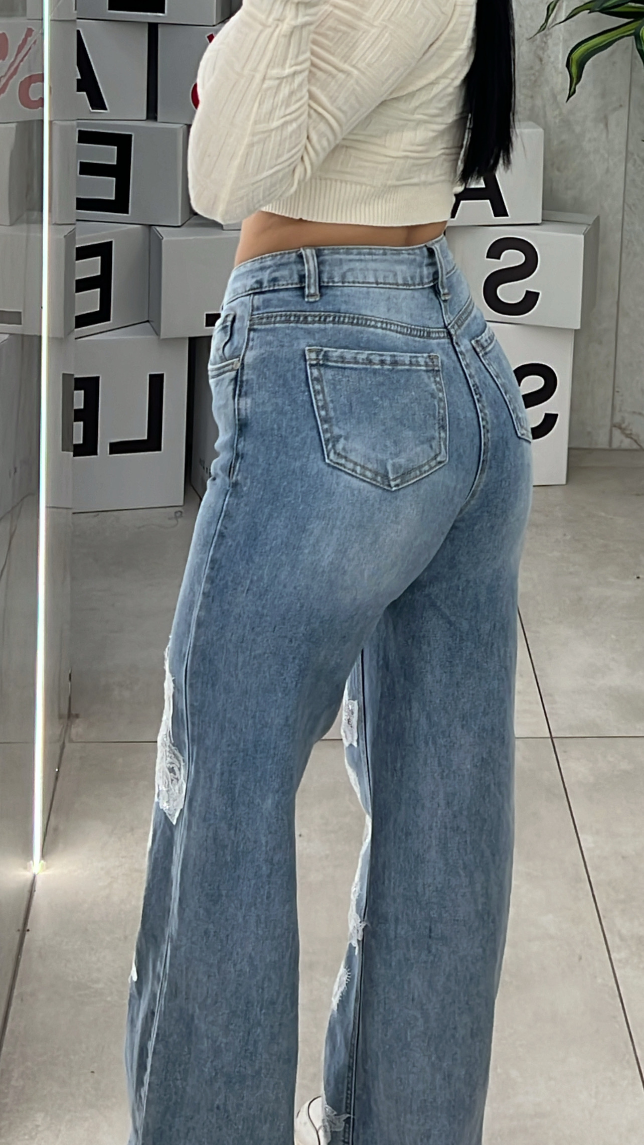 Τζιν με λεπτομέρειες δαντέλα  και τσέπες .