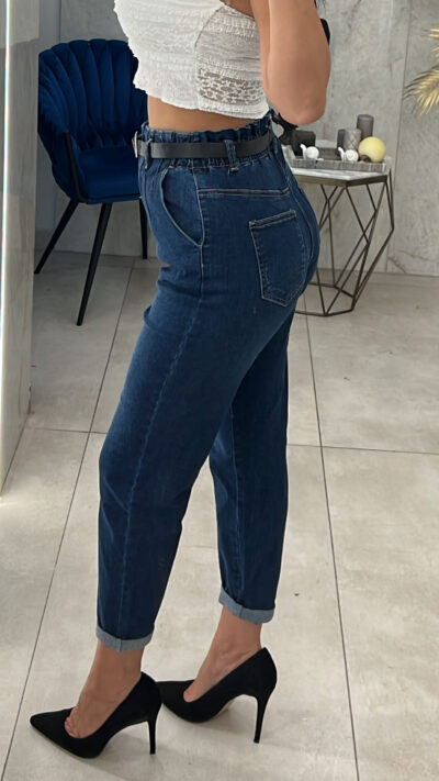 Τζιν Ψηλόμεσο με Ζώνη-8227/Μπλε