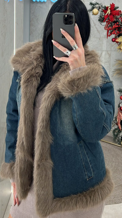 Τζίν τζάκετ-Γούνα double face MO70109/Μπλε