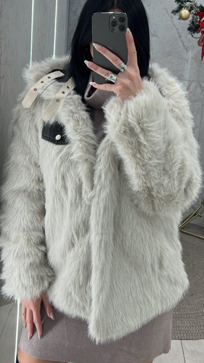 Τζίν τζάκετ-Γούνα λευκή double face  με τσέπες δεν κλείνει μπροστά