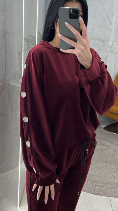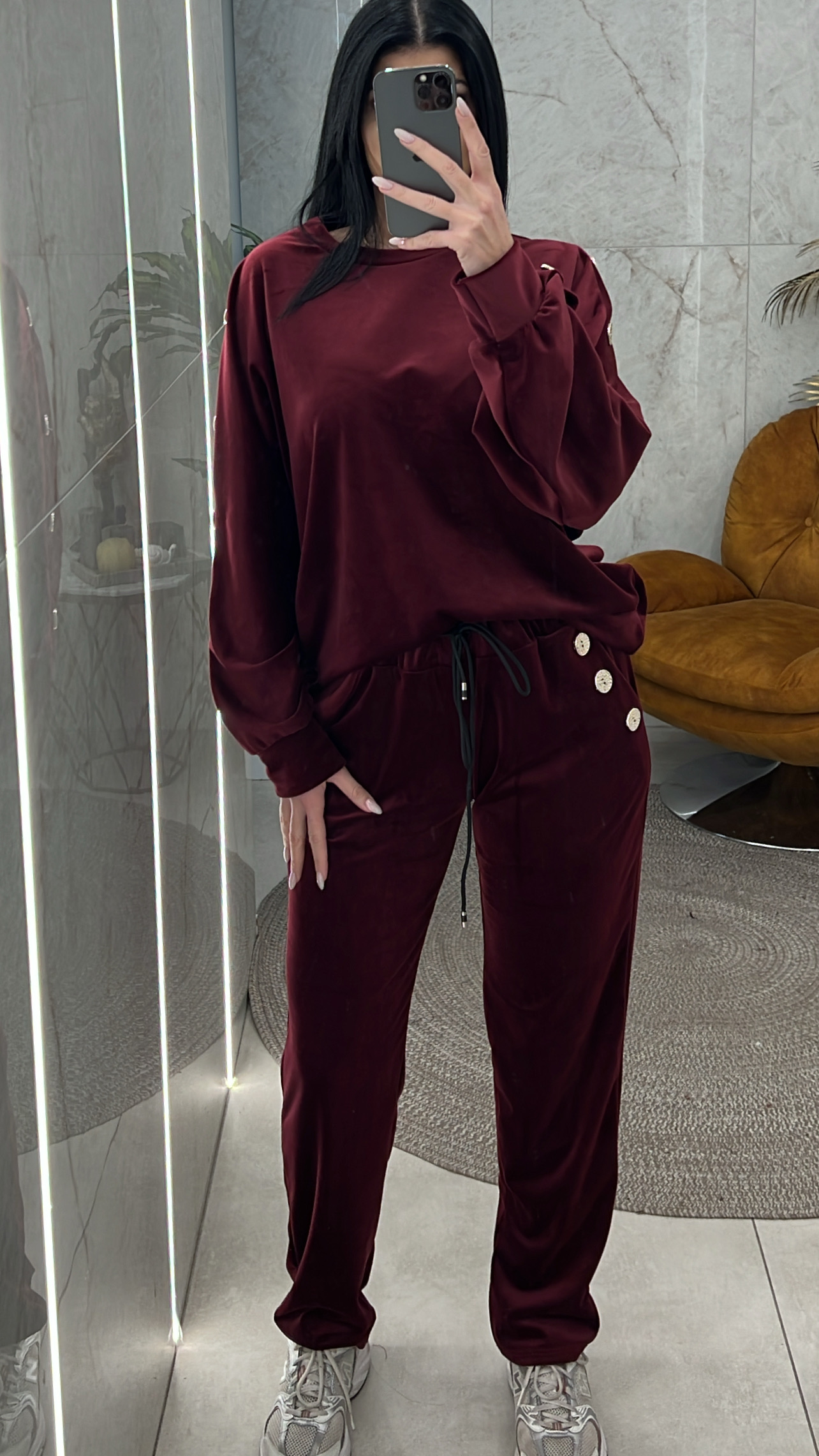 Βελουτέ Σετ Φόρμας με Κουμπιά/Μπορντό