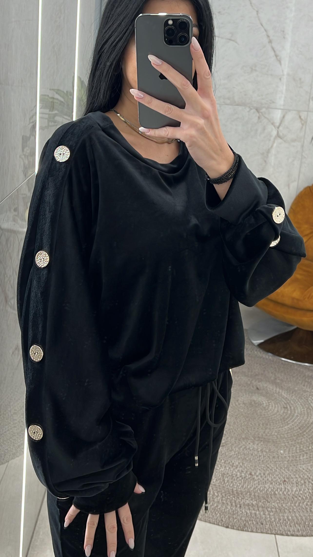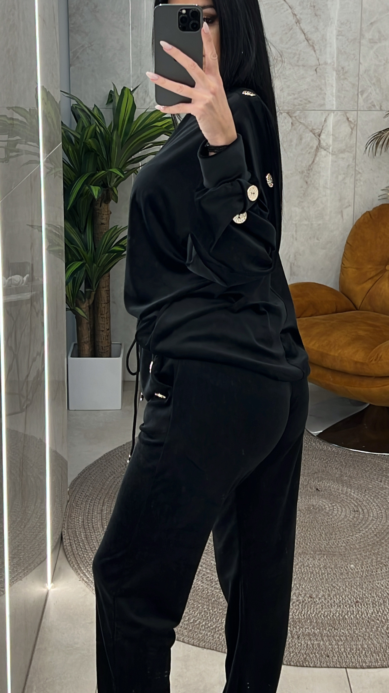 Βελουτέ Σετ Φόρμας με Κουμπιά/Μαύρο