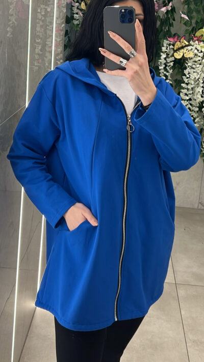 Ζακετα με κουκουλα ,τσέπες και κορδονι στο τελειωμα .