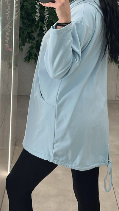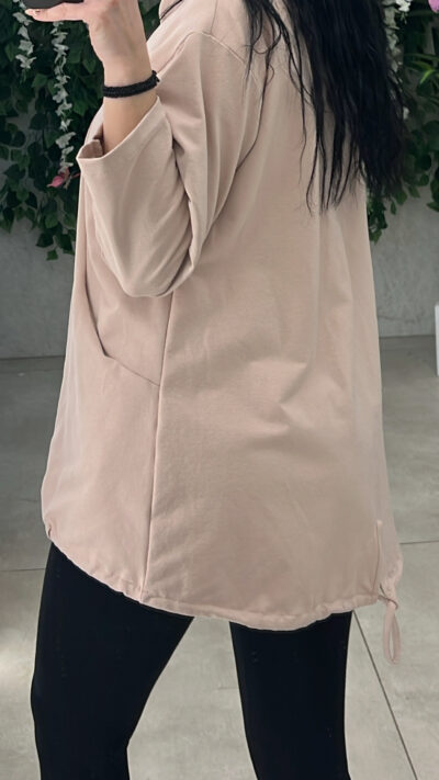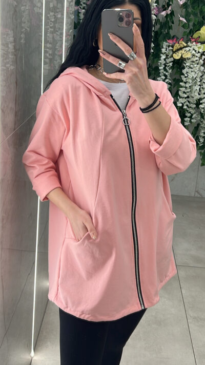 Ζακετα με κουκουλα ,τσέπες και κορδονι στο τελειωμα .