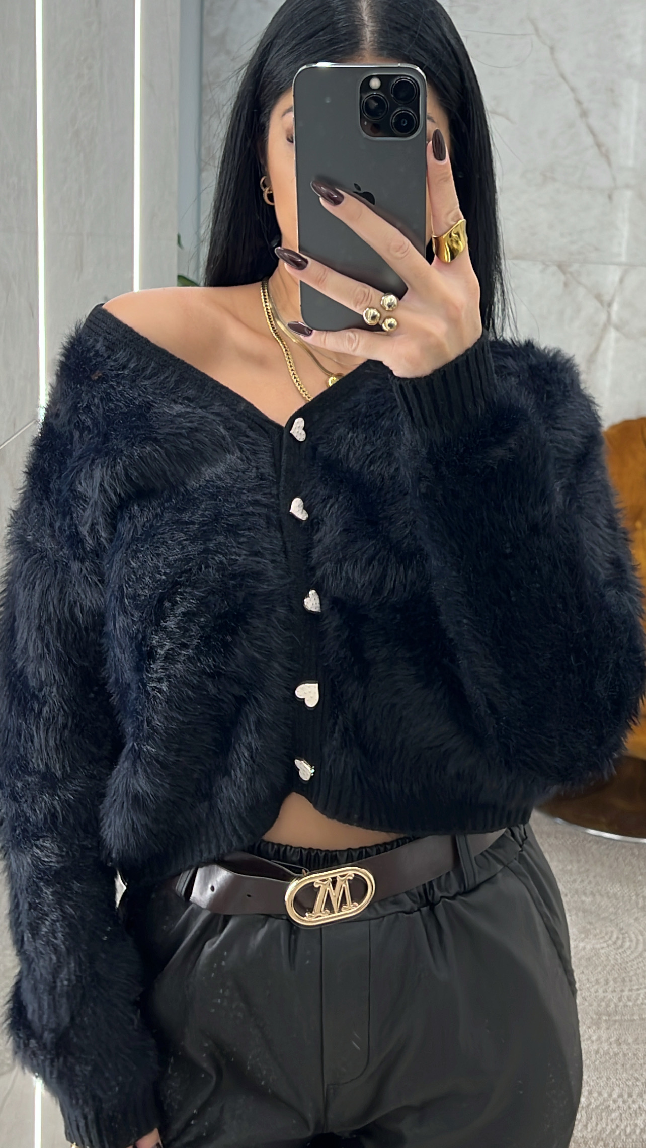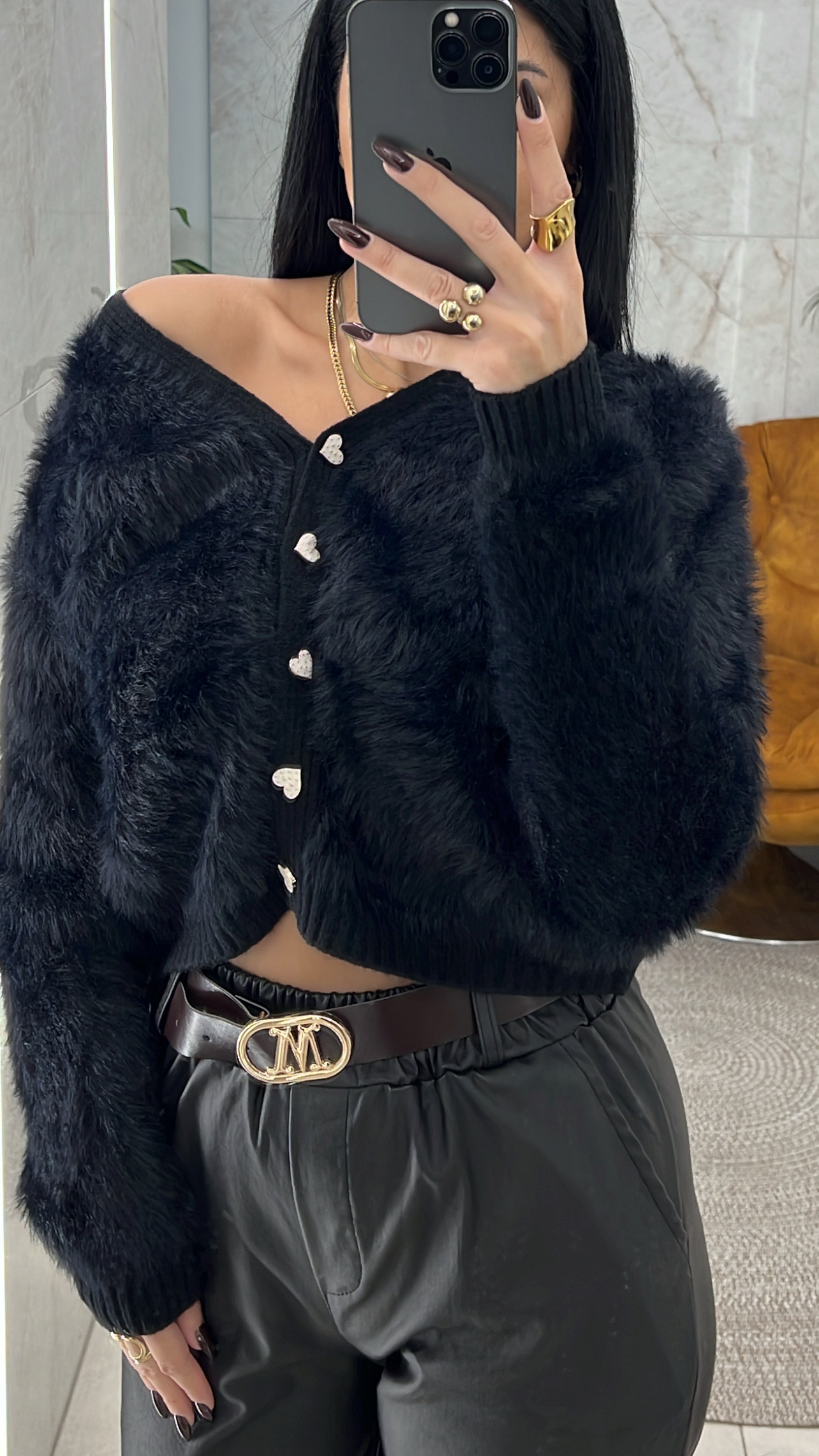 Ζακέτα ελαστική με κουμπιά σε σχήμα καρδιάς