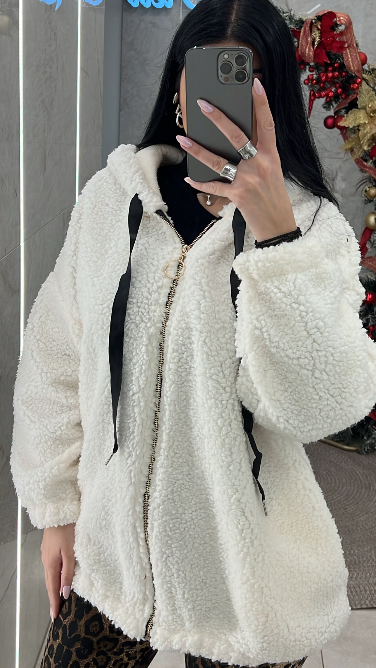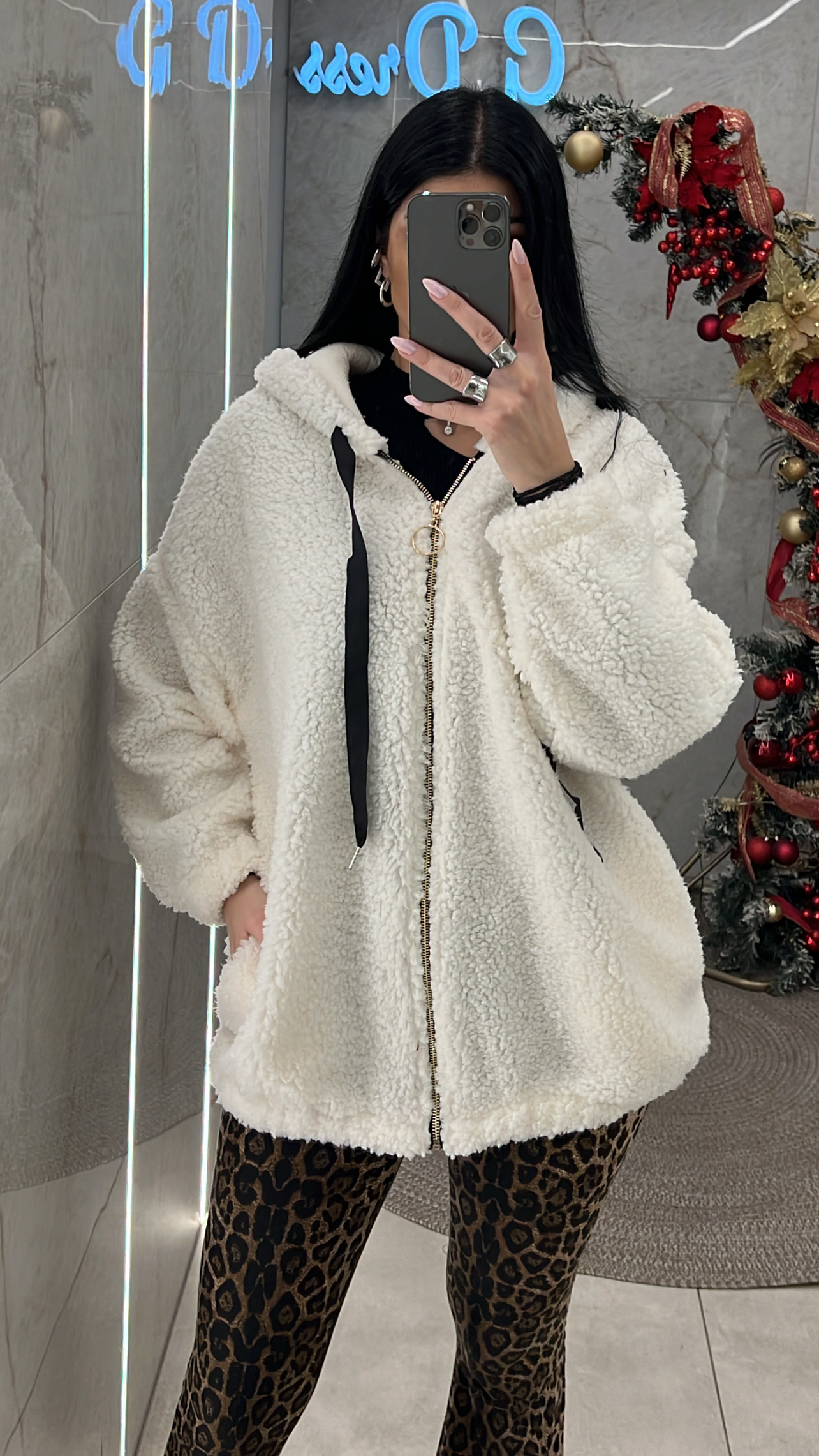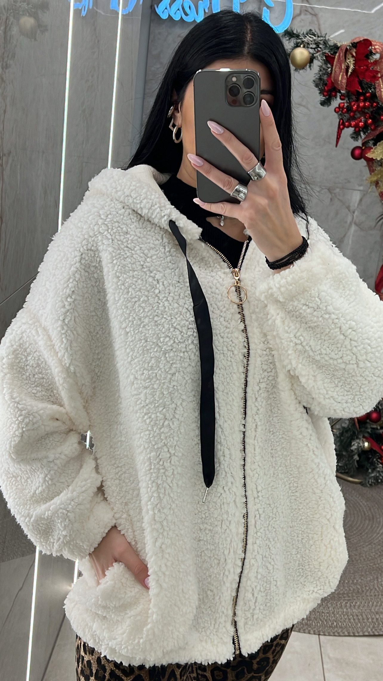 Ζακέτα μπουκλέ κλείνει με φερμουάρ έχει κουκούλα τσέπες
